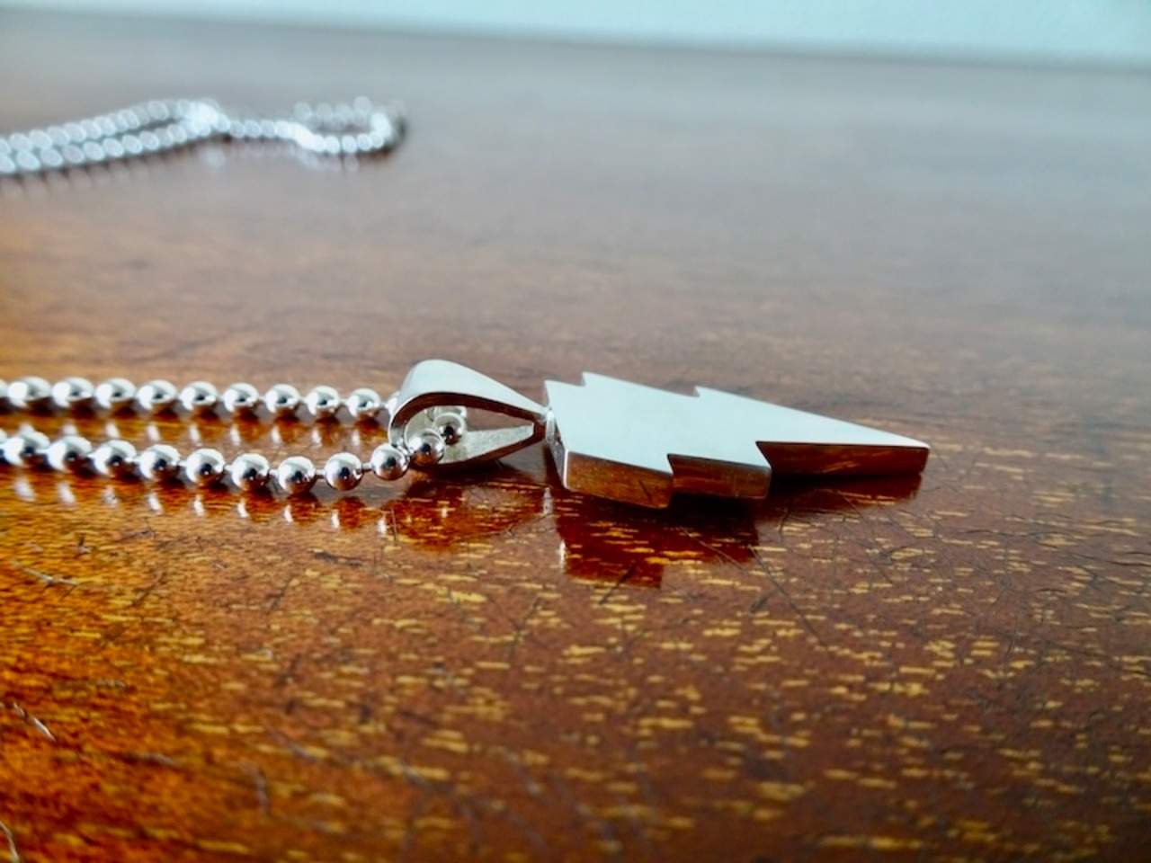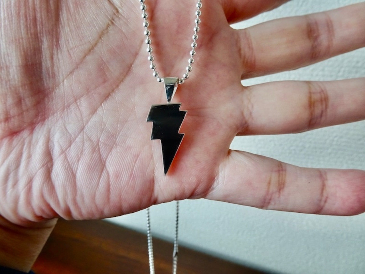 ごらん頂きありがとうございます。 オリジナルブランド 仁尾彫金『プラチナ、サンダープレート2』を出品致します。 オリジナルのアクセサリーを自ら制作しています。今回、バチカンを含め縦3cm、横1.2cmのサンダーをイメージしたプレートを制作致しました。 厚みも2ミリ強あります。シ全てプラチナの塊なので変色する事はありません!!デザイン、制作を私自身で行っている為、今回、新品をご用意致します。 ネックレス50cm(シルバー925ボールチェーン(45から50cmサイズ調節可)も付属致します。