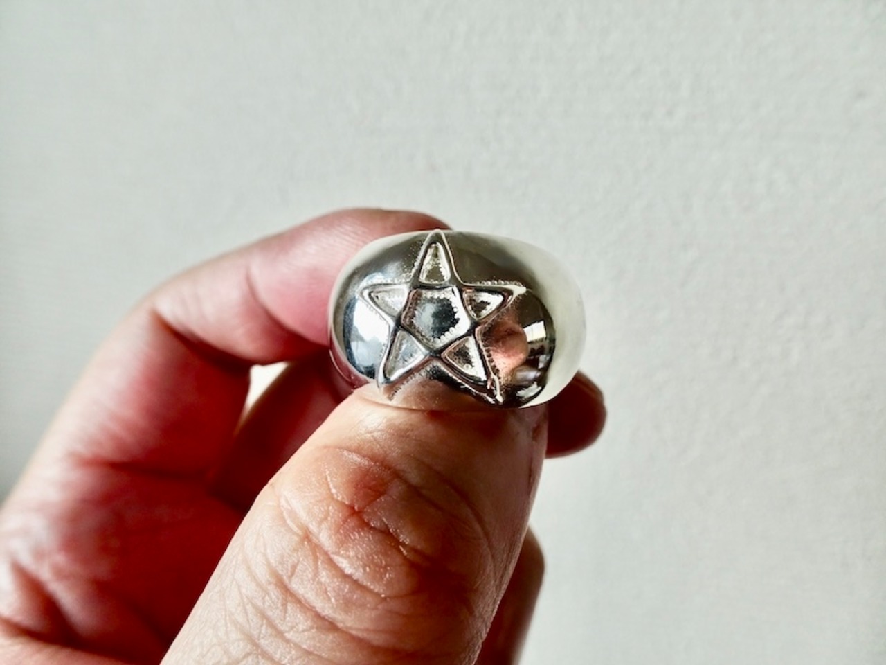 仁尾彫金『プラチナ、スター甲丸リング』ハンドメイド381