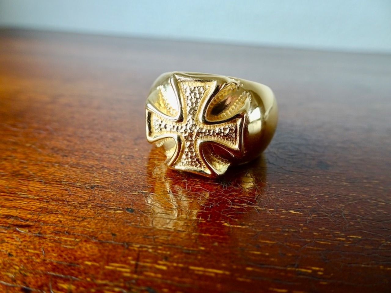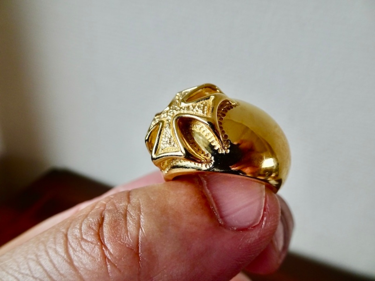 仁尾彫金『k18ゴールド、ギャラクシーアイアンクロス甲丸リング』ハンドメイド394