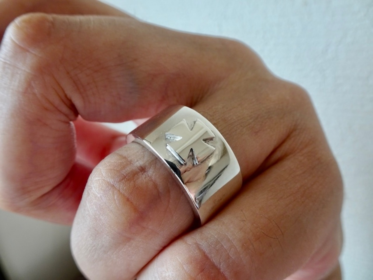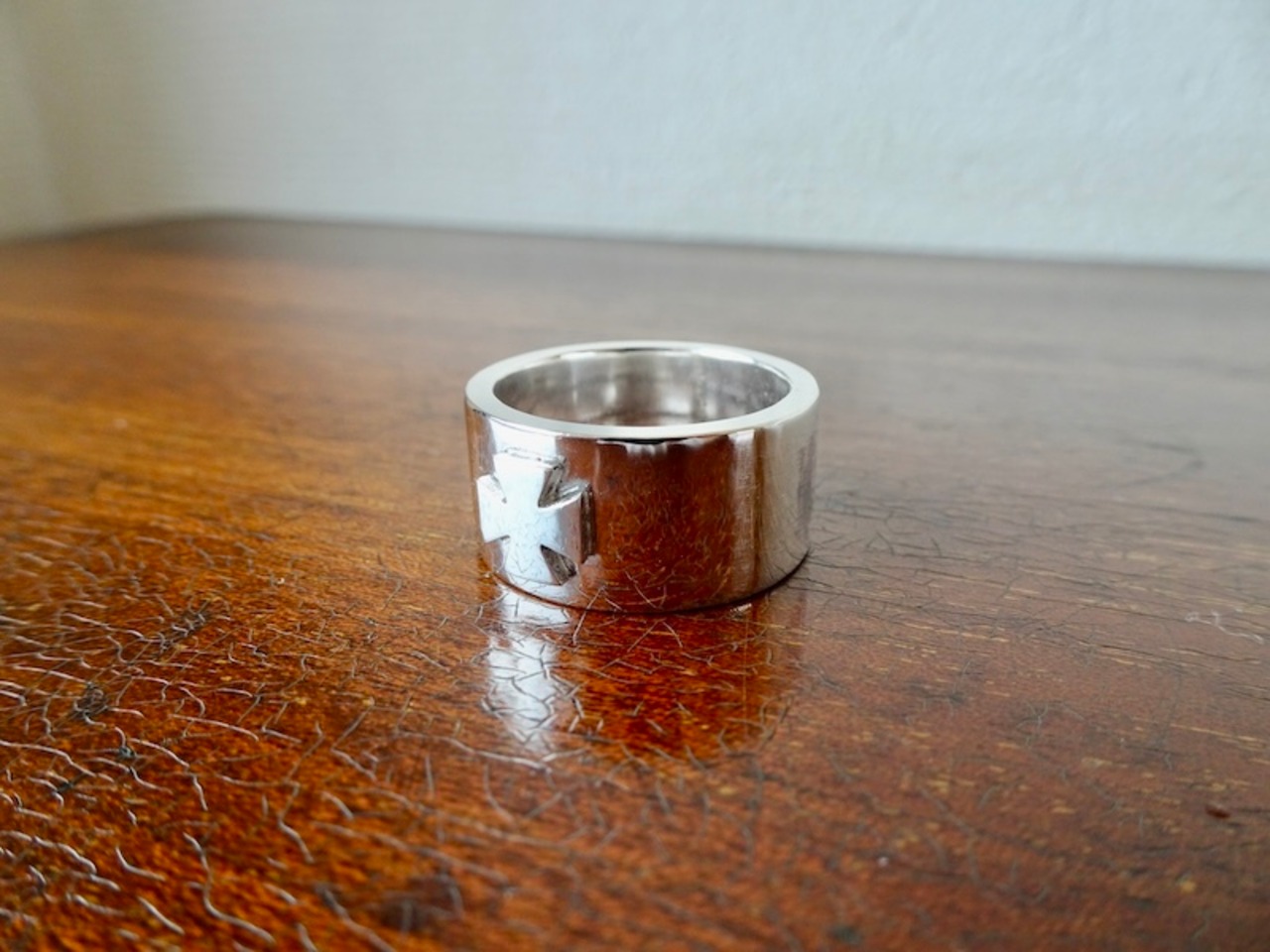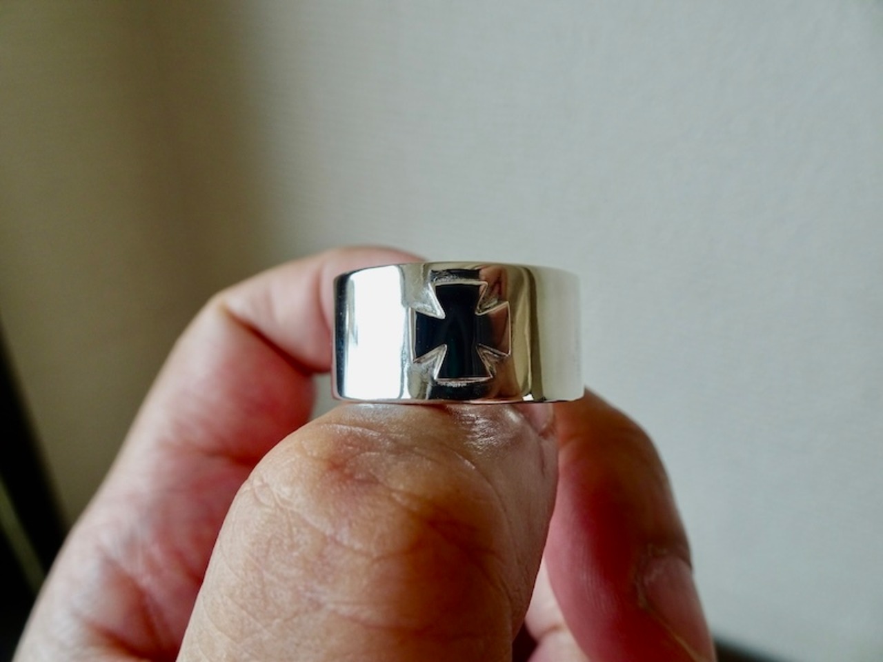 仁尾彫金『プラチナ、平打アイアンクロスリング』ハンドメイド412