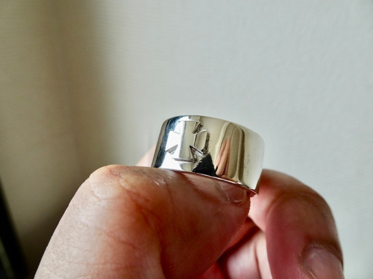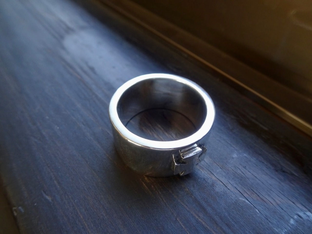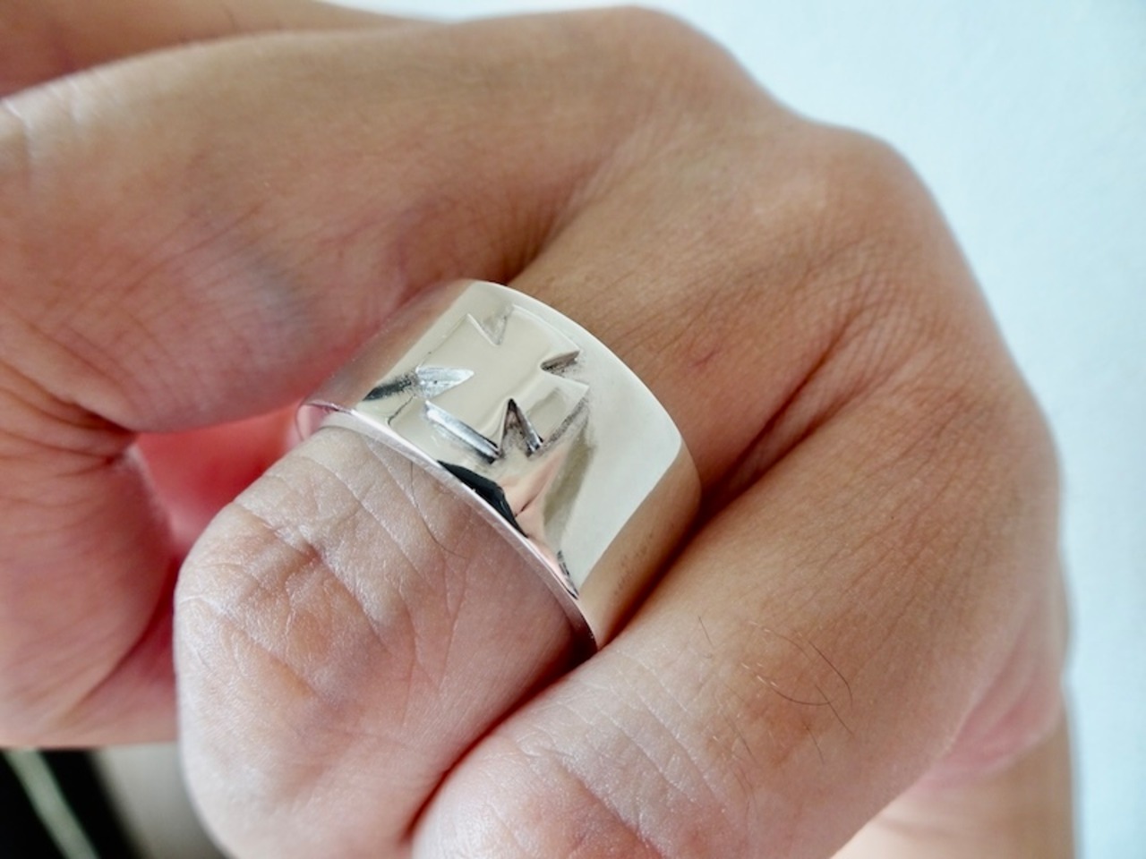 仁尾彫金『プラチナ、平打アイアンクロスリング』ハンドメイド412