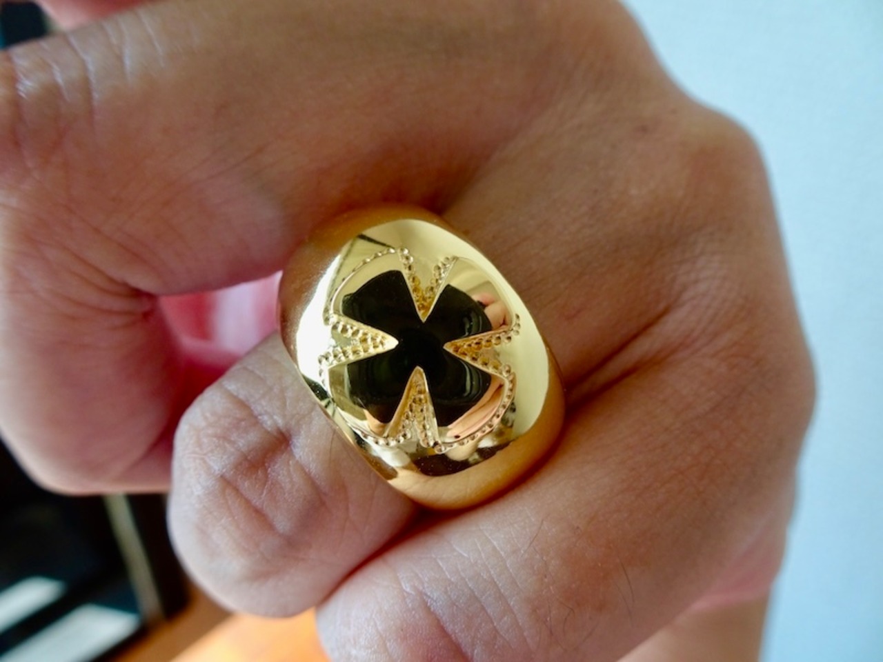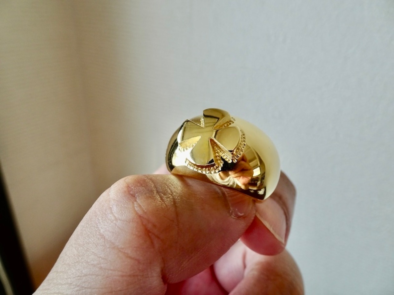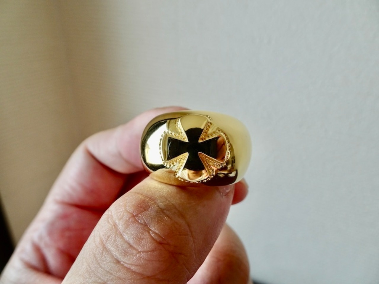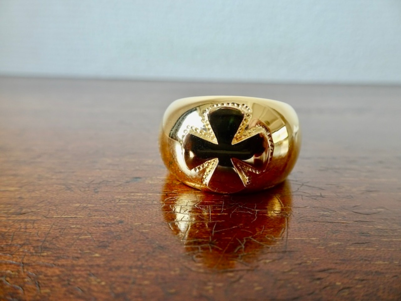 仁尾彫金『k18ゴールド、アイアンクロス甲丸リング』ハンドメイド415