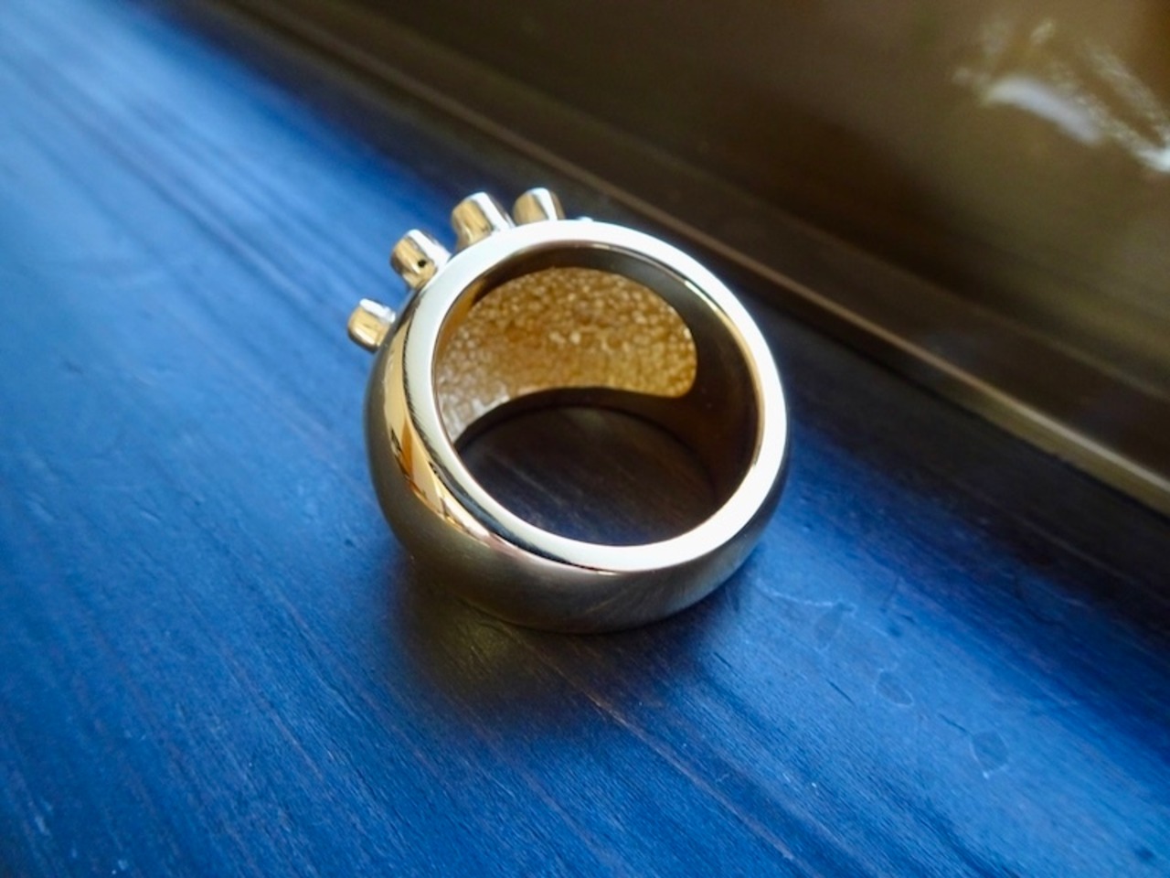 仁尾彫金『6つ星ダイヤ、k18ゴールド、クラウン甲丸リング』ハンドメイド459