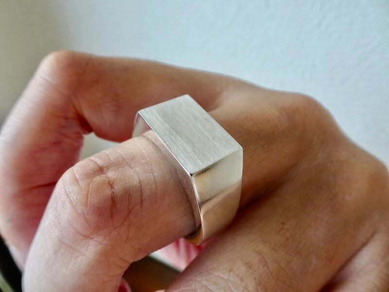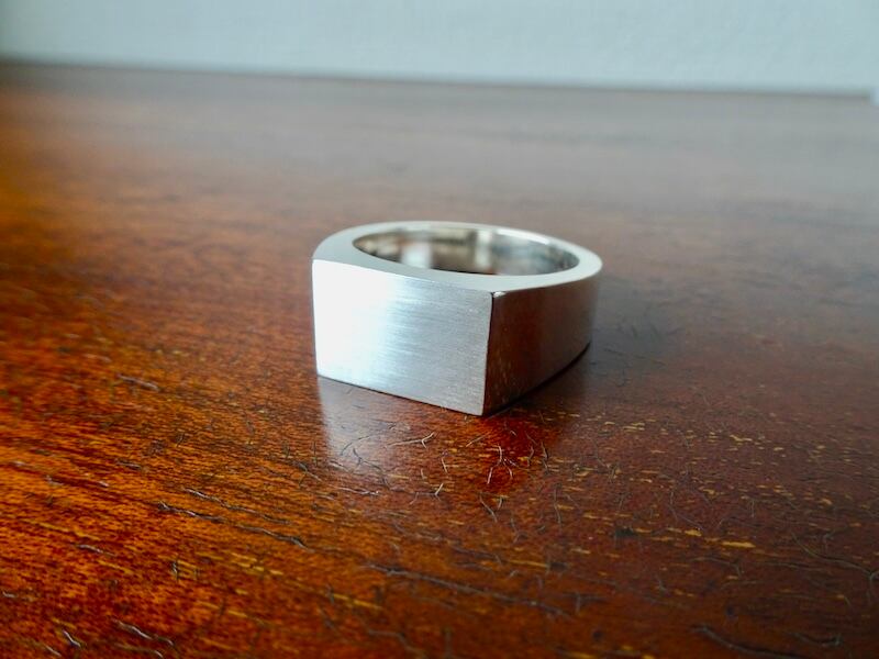 ごらん頂きありがとうございます。 オリジナルブランド 仁尾彫金『シルバー印台リング2、ヘアライン』を出品致します。 縦横1.1×1.6cmのシンプルな長方形型印台リングを制作致しました。印台面はヘアライン艶消しをしています。 シルバーなので使い込むと独特の趣が出てきます。オリジナリティを追求しデザイン、制作を私自身で行っている為、今回、新品をご用意致します!!