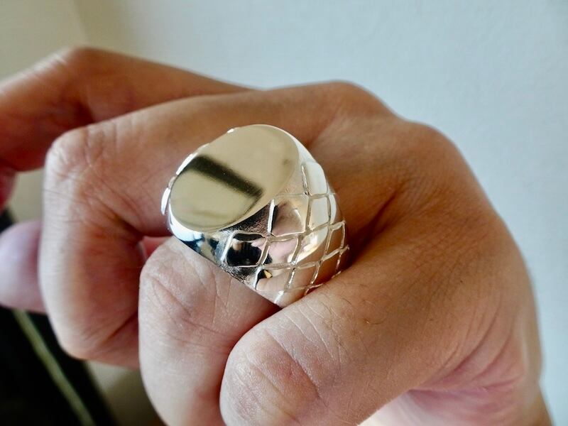ごらん頂きありがとうございます。 オリジナルブランド 仁尾彫金『パイソン楕円の印台リング、燻無し、磨き』を出品致します。縁起物のアクセサリーをオリジナルで自ら制作しています。今回、幅2.1cm、厚み7mm弱のシンプルな楕円の印台リングを制作致しました。そこに今回、両サイド縁起物のパイソン柄をオリジナルで表現致しました。印台面も磨いています。燻はしていません。重量も約44gとシルバーをズシリと大胆に使用し、しっかりとした作りになっています。 使い込むとリングはシルバーなので独特の味が出てきます。オリジナリティを追求しデザイン、制作を私自身で行っている為、今回、新品をご用意致します!!