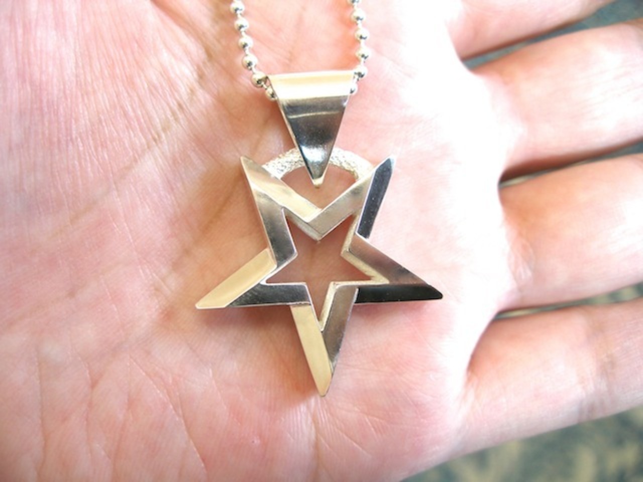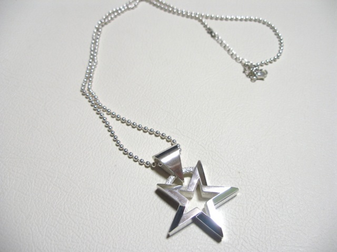 ごらん頂きありがとうございます。 オリジナルブランド 仁尾彫金『プラチナ逆スターヘッド』を出品致します。宇宙をテーマにしたアクセサリーをオリジナルで自ら制作しています。今回、立体的な星モチーフを逆さにして制作致しました。バチカンを含めまして縦3.8cm横3.0cmので厚みも6mmとかなり肉厚でしっかりとした作りになっています。全てプラチナ900の塊で約29gとプラチナをズシリと大胆に使用しています。全てプラチナの塊なので変色する事はありません。デザイン、制作を私自身で行っている為、今回、新品をご用意致します!!ネックレス50cm(シルバー925ボールチェーン(45から50cmサイズ調節可)も付属致します。