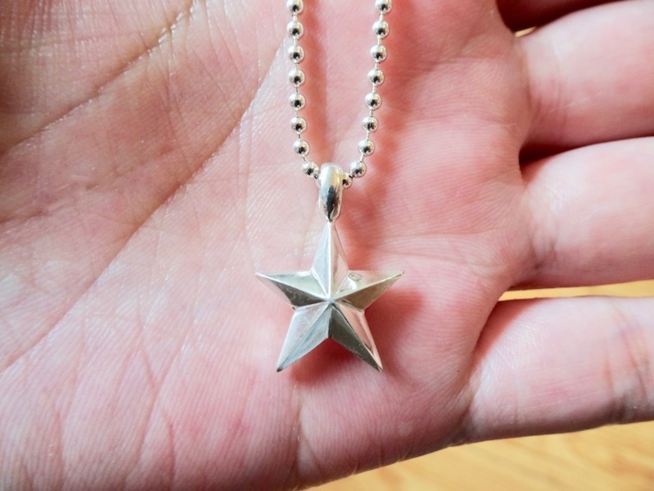 仁尾彫金『プラチナ立体スターペンダントリバーシブル』ハンドメイド172