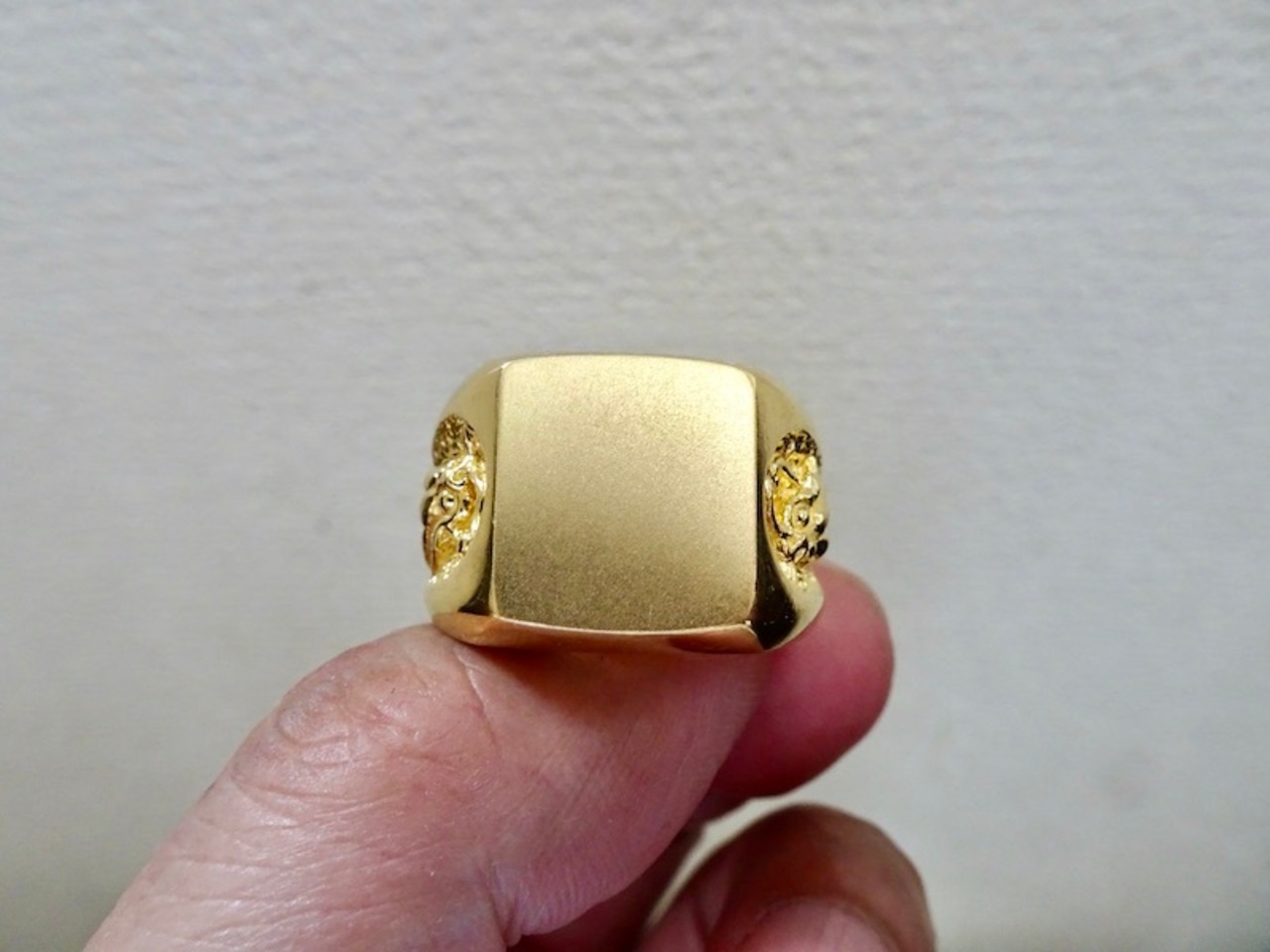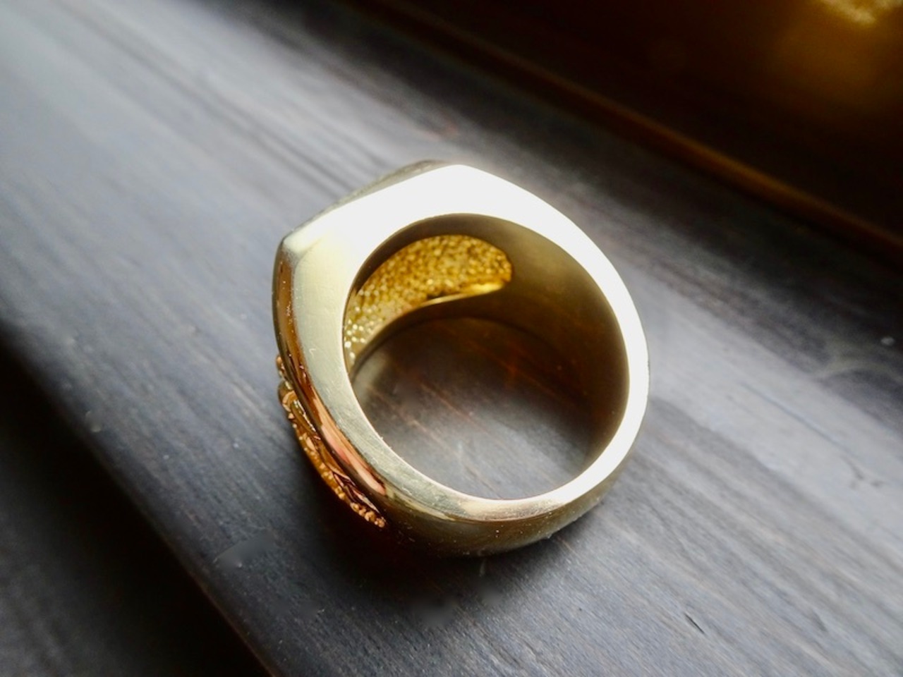 仁尾彫金『ゴールド双龍印台リング』ハンドメイド178