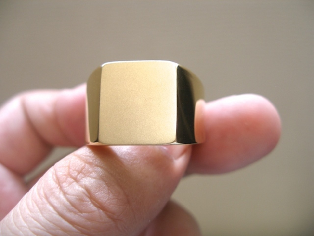 ごらん頂きありがとうございます。 オリジナルブランド 仁尾彫金『ゴールド印台リング』を出品致します。 オリジナルのアクセサリーを自ら制作しています。今回、縦1.6×横1.4cmのシンプルな印台部分を艶消し加工した非常にシンプルな印台リングを制作致しました。とてもシンプルなので飽きのこないデザインだと思います。全てk18 の塊で重量は約40gとズシリと金を大胆に使用しています。全て金の塊なので永久にゴールドに輝き続けます!! オリジナリティを追求しデザイン、制作を私自身で行っている為、今回、新品をご用意致します!!