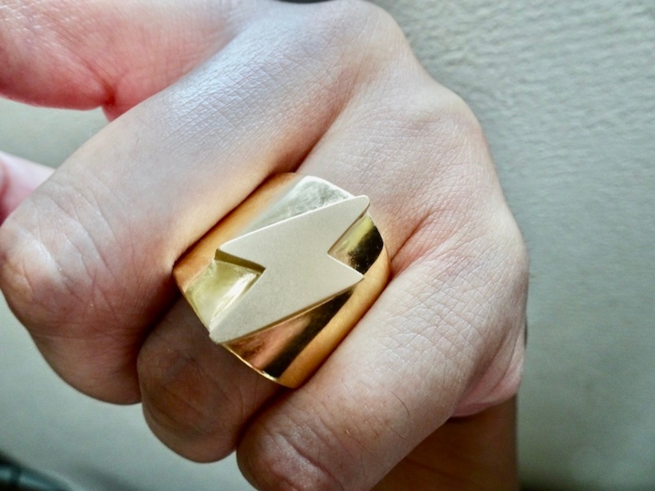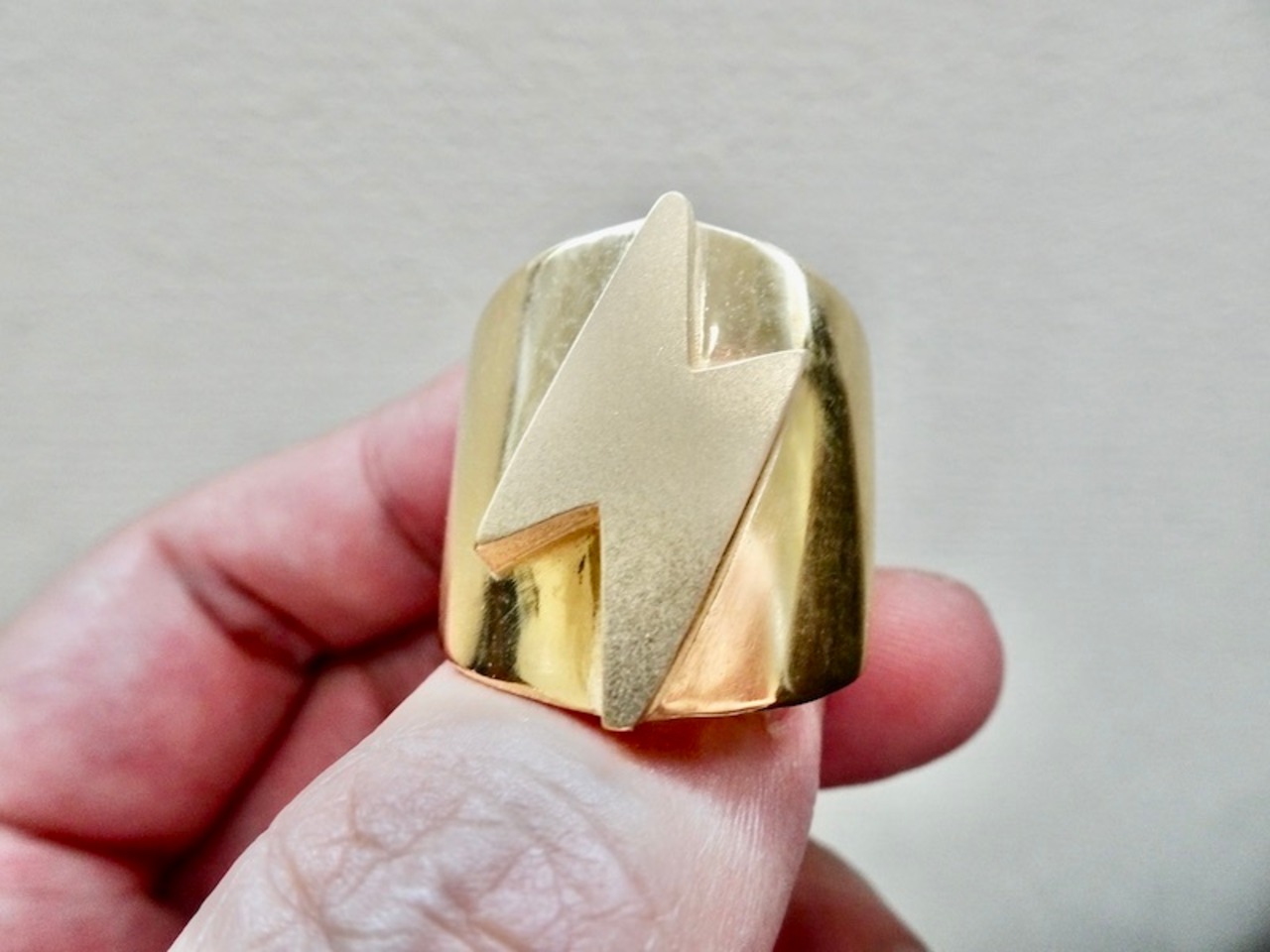 ごらん頂きありがとうございます。 オリジナルブランド仁尾彫金『ゴールドサンダーリング』を出品致します。オリジナルのアクセサリーを自ら制作しています。今回、最大幅2.4cm厚み5mm弱のサンダーのモチーフのリングを制作致しました。サンダーモチーフの部分は艶消し加工をしています。リングの厚みも2mmあり全てk18 の塊で金を約42gと大胆に使用しています。全て金の塊なので永久にゴールドに輝き続けます!!オリジナリティを追求しデザイン、制作を私自身で行って為、今回、新品をご用意致します!!