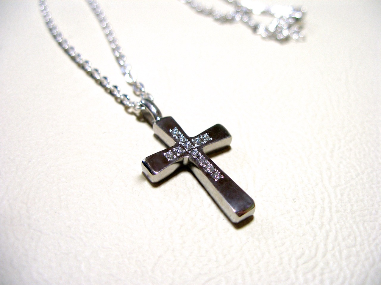 仁尾彫金『フラットプラチナダイヤクロス』ハンドメイド