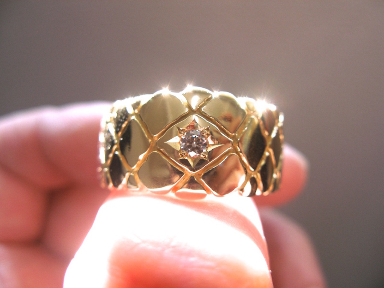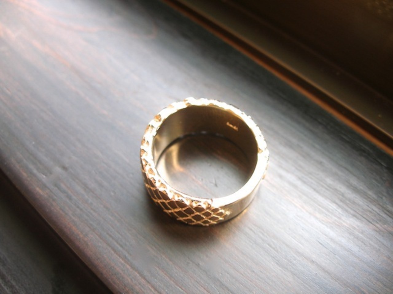 仁尾彫金『一つ星ダイヤ平打ゴールドパイソンリング』ハンドメイド445