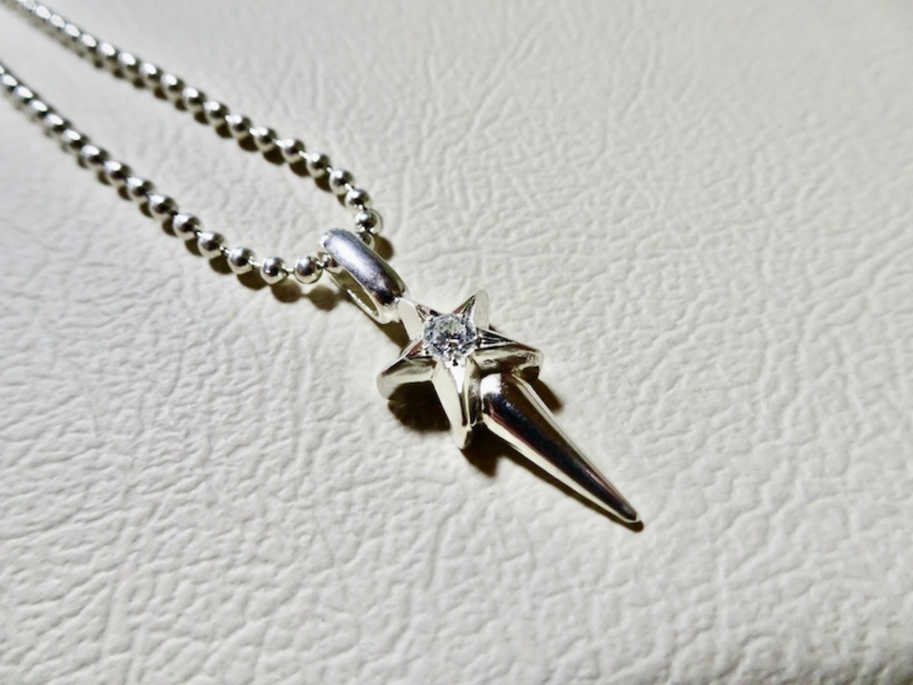 ごらん頂きありがとうございます。 オリジナルブランド 仁尾彫金『一つ星ダイヤプラチナスタースパイク』を出品致します。オリジナルのアクセサリーを自ら制作しています。今回、幅9.5ミリの星のモチーフにスパイクを付けて制作致しました。縦はバチカン、スパイクを含めまして2.7cmになります。最大厚みは5ミリあります。全てプラチナの塊で5g強あります。そこに今回、光輝く星をイメージして上品質の3ミリのダイヤモンドを1石堀留しました。使用ダイヤは上品質なので照り輝きは最上級です。輝く星をイメージしたダイヤは永久に輝き続けます。全てプラチナの塊なので変色する事はありません。デザイン、制作を私自身で行っている為、今回、新品をご用意致します!! シルバー925ボールチェーン45cm(40から45cmサイズ調節可)も付属致します。
