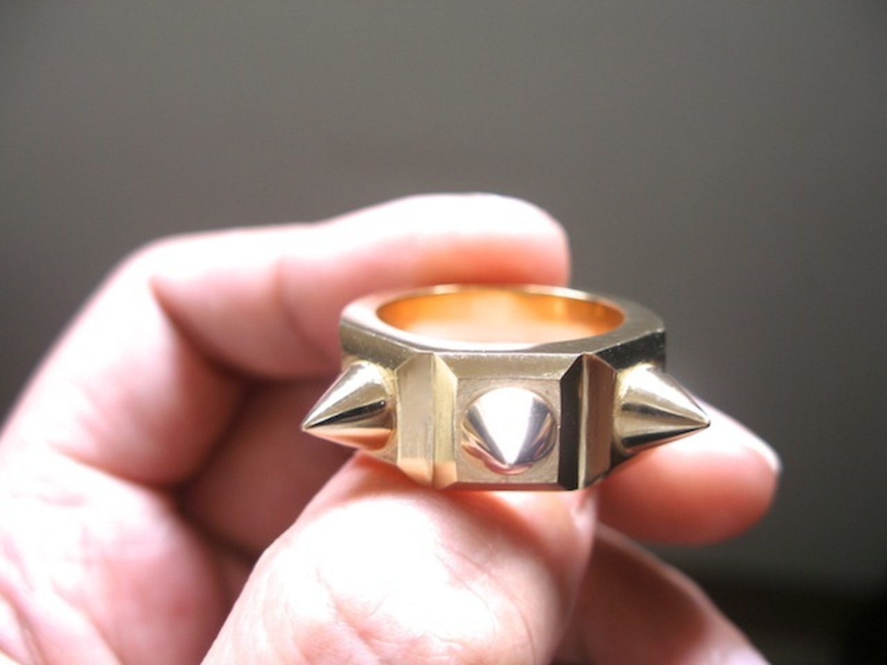 仁尾彫金『ゴールド3つのマッドスパイクリング』ハンドメイド104