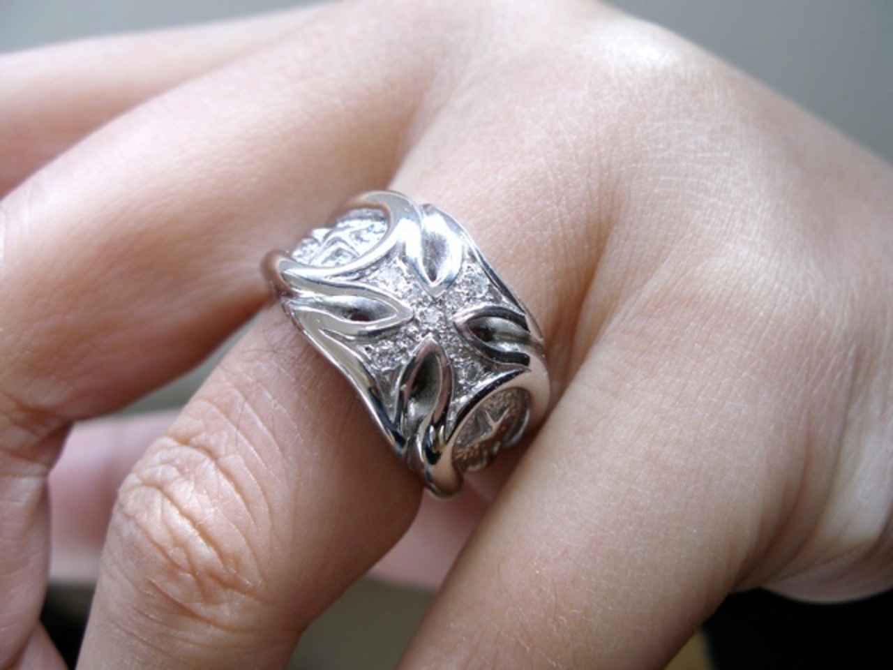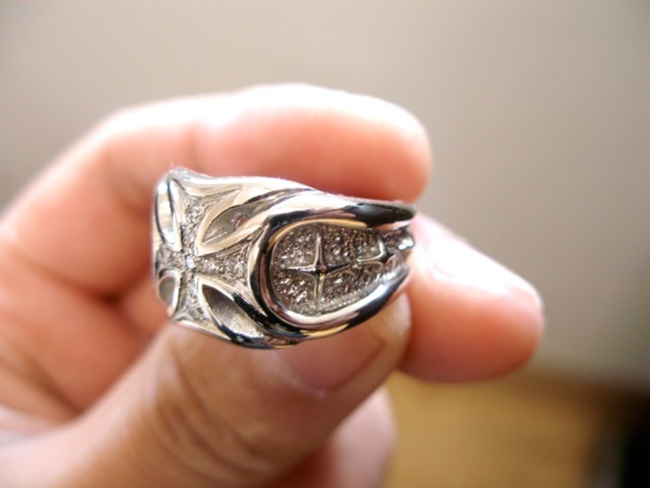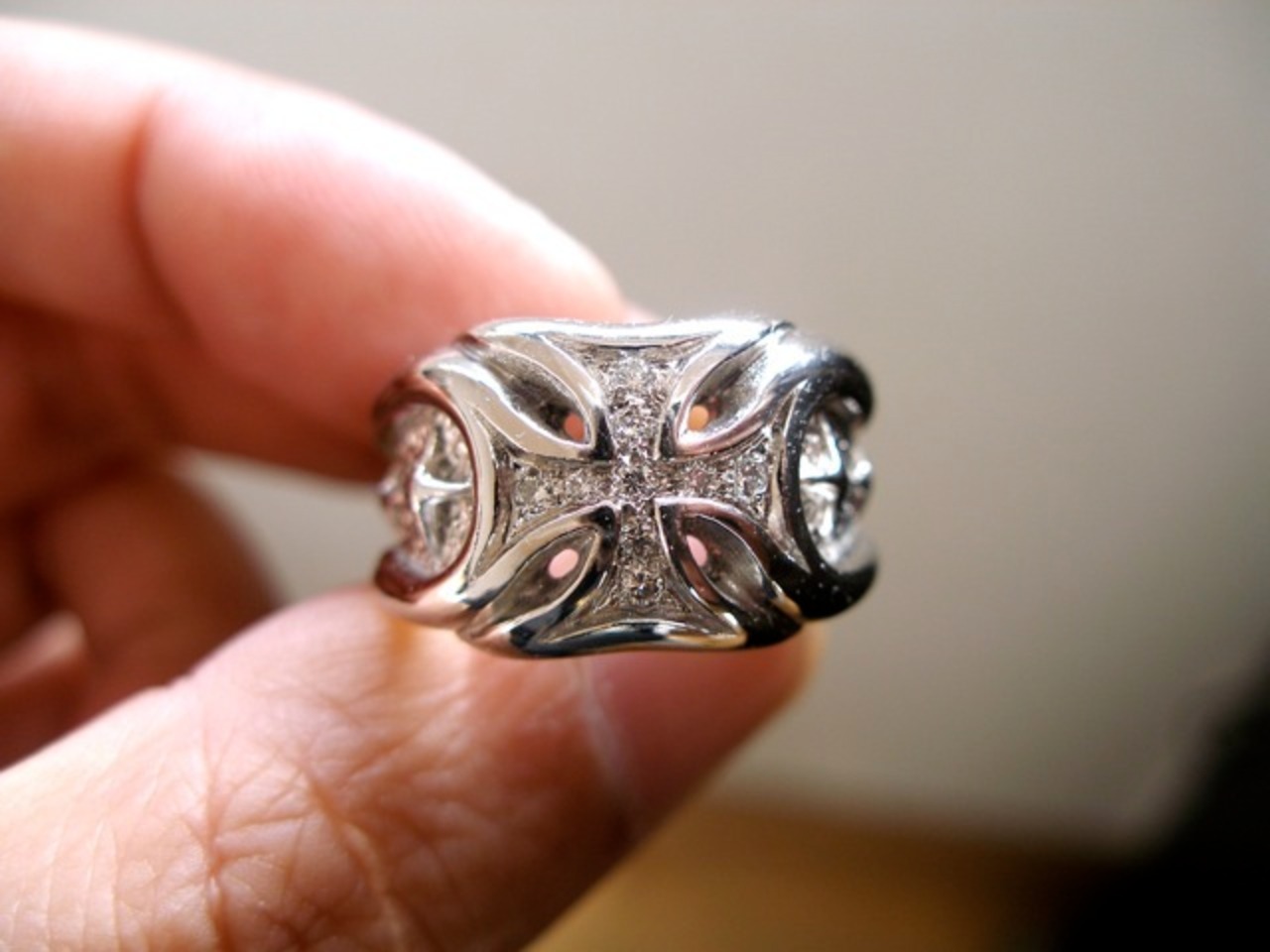 仁尾彫金『プラチナギャラクシーアイアンクロスダイヤリング』ハンドメイド