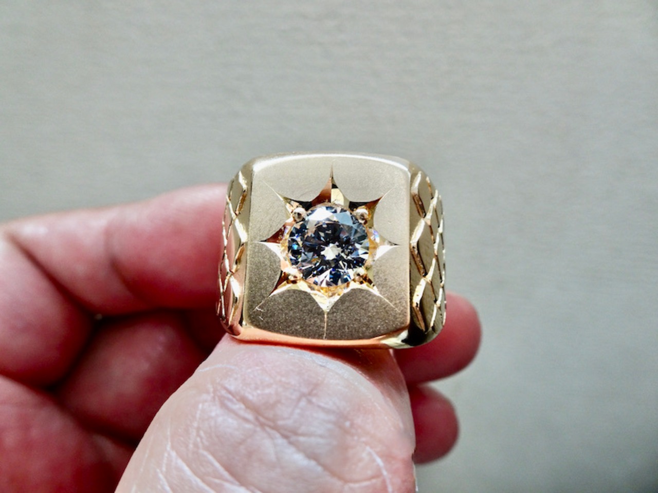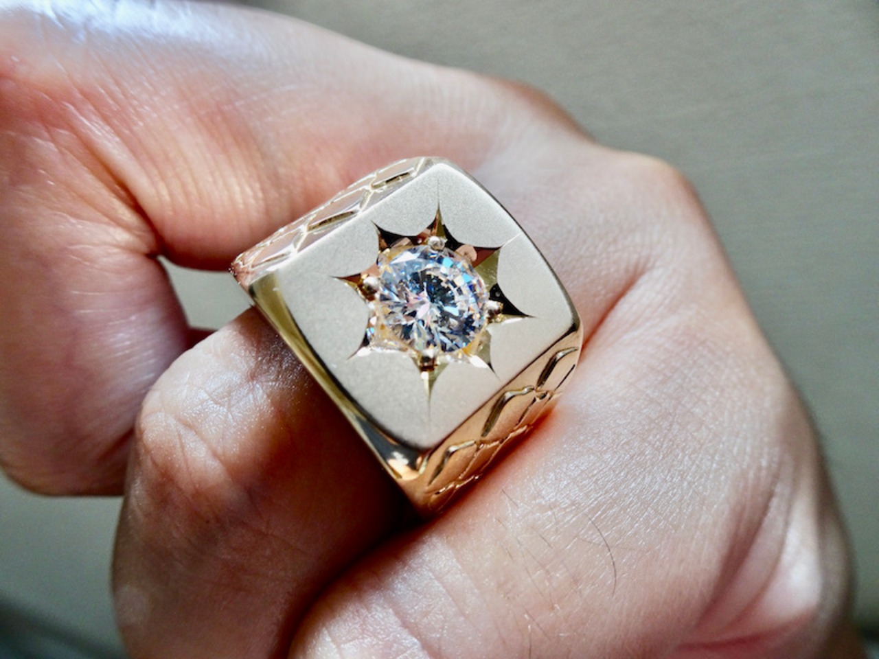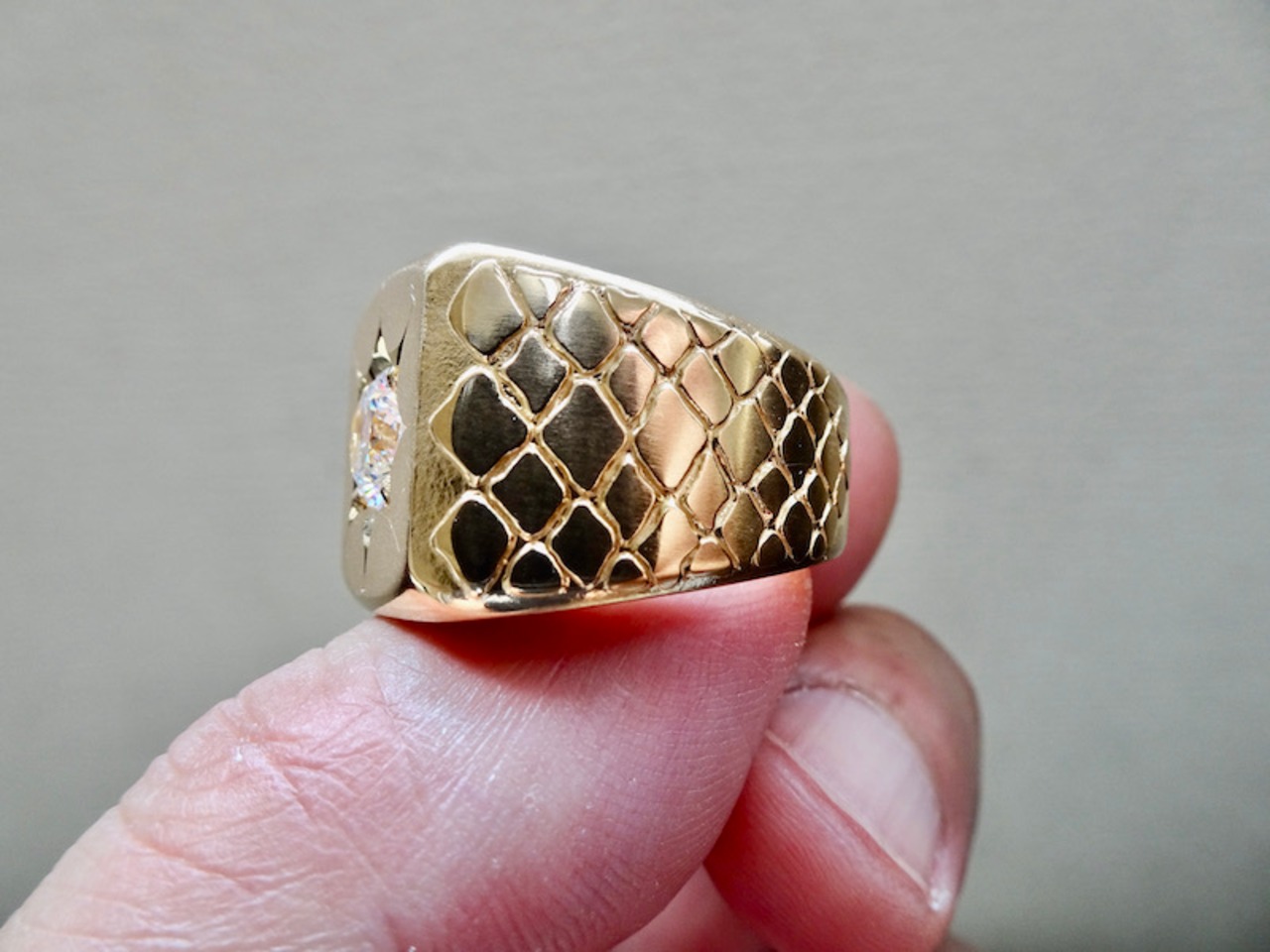 仁尾彫金『一つ星ジルコニア、ゴールドパイソン印台リング』ハンドメイド209