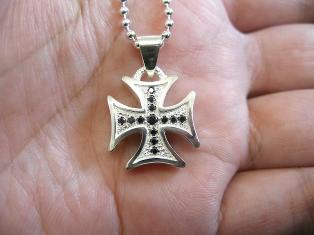 仁尾彫金『ギャラクシー、プラチナ、アイアンクロス、ブラックダイヤヘッド』ハンドメイド438