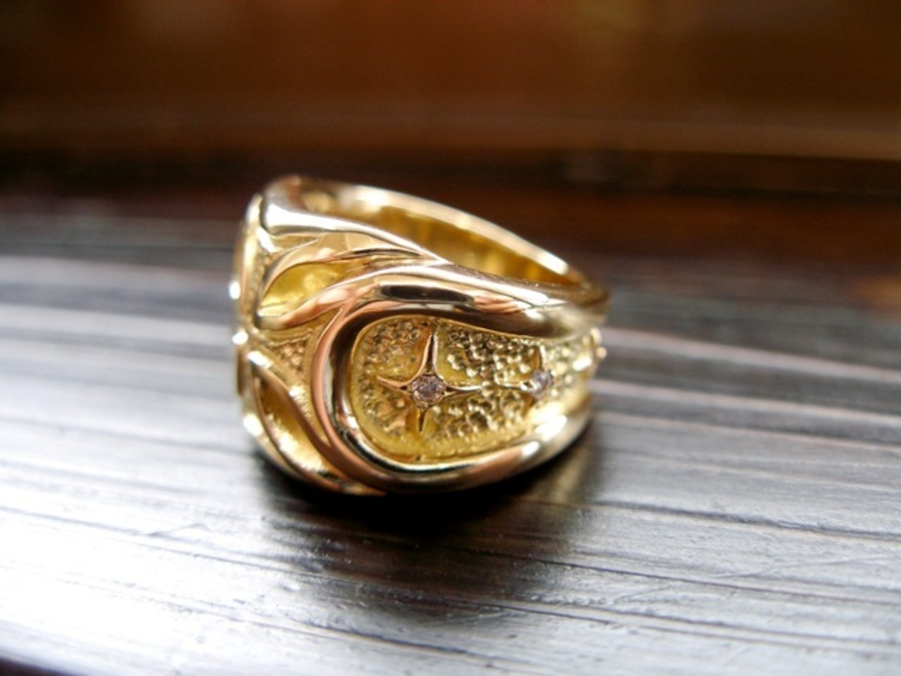 仁尾彫金『ゴールドギャラクシーアイアンクロスダイヤリング』ハンドメイド436