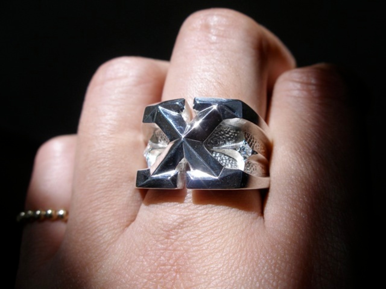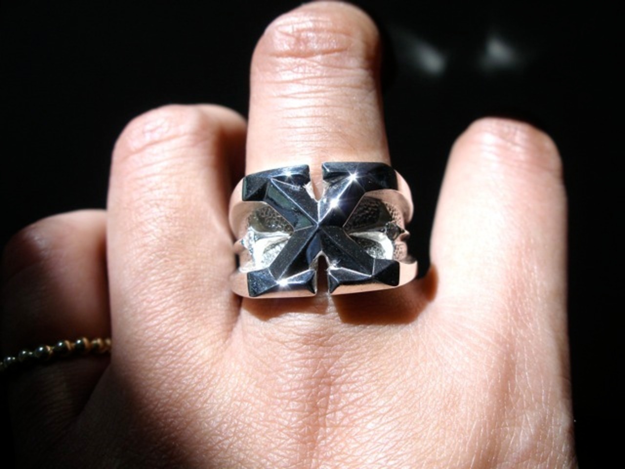 ごらん頂きありがとうございます。 オリジナルブランド 仁尾彫金『プラチナXギャラクシーダイヤリング』を出品致します。宇宙をテーマにしたアクセサリーをオリジナルで自ら制作しています。今回、 縦1.5cm強、横1.8cmの立体的なXをモチーフにデザインし、サイドに1つづつ流れる様な星をイメージしたモチーフを配置しました。そこに2.4mmのダイヤモンドを計2石を堀留致しました。使用ダイヤは上級クラスダイヤなので無職透明で照り輝きは最上級です。全てpt900で約32gとプラチナをズシリと大胆に使用しています。全てプラチナの塊なので変色する事はありません。オリジナリティを追求しデザイン、制作私自身で行っている為、今回、新品をご用意致します!!