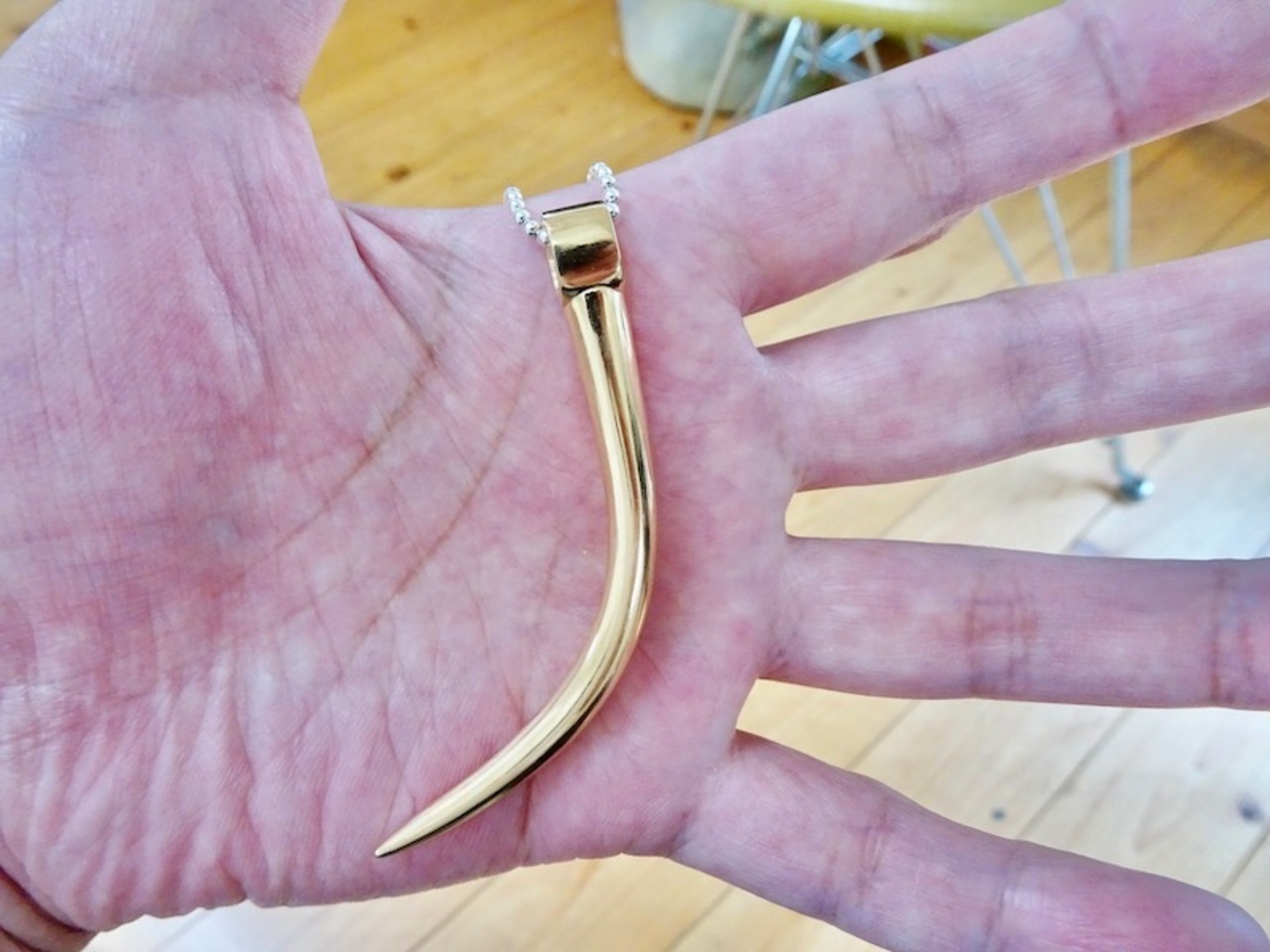 ごらん頂きありがとうございます。 オリジナルブランド仁尾彫金『ゴールド角のペンダント』を出品致します。 オリジナルのアクセサリーを自ら制作しています。今回、バチカンを含めまして縦6.0cm、最大厚み6mmのシンプルな角の造形を制作致しました。全てk18の塊で金を約25gと大胆に使用しています。全て金の塊なので永久にゴールドに輝きます!!デザイン、制作を私自身で行っている為、今回、新品をご用意致します!! シルバー925ボールネックレス50cm(45から50cmサイズ調節可)も付属致します。