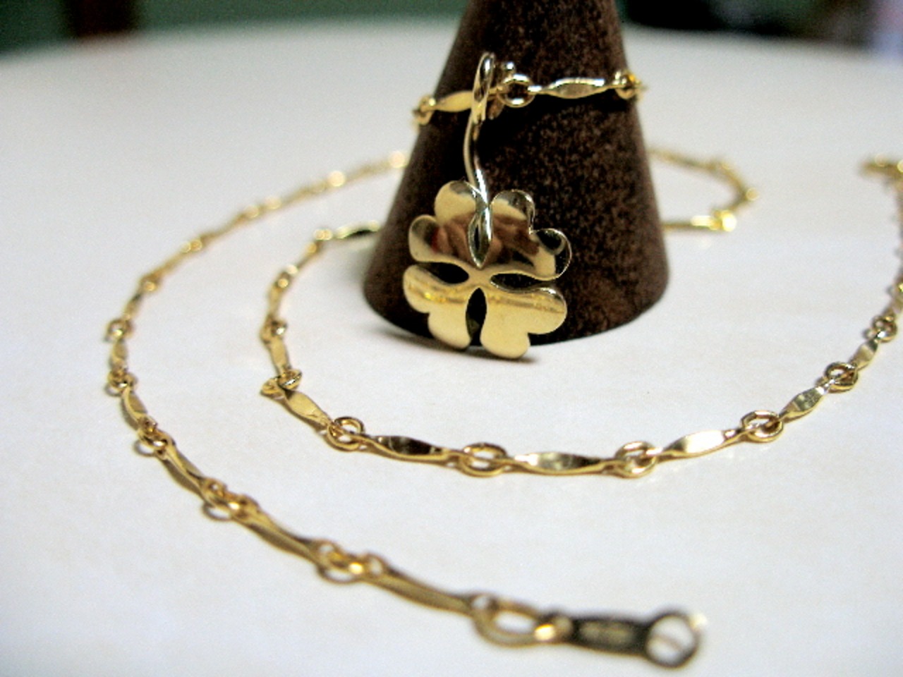仁尾彫金『ゴールドハートクローバーペンダント』ハンドメイド