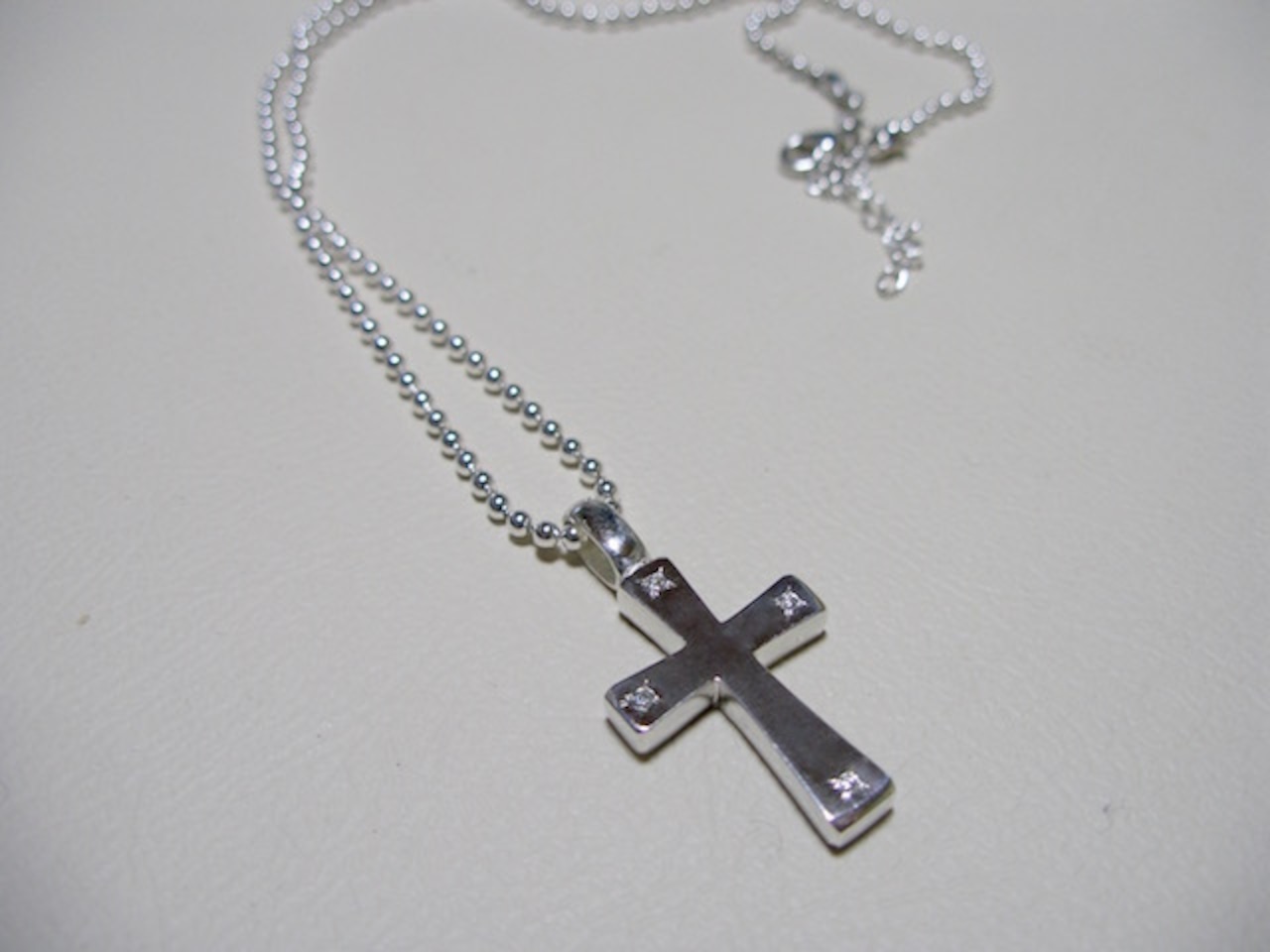 ごらん頂きありがとうございます。 オリジナルブランド 仁尾彫金『四つ星ダイヤフラットプラチナクロス』を出品致します。 宇宙をテーマにしたアクセサリーをオリジナルで自ら制作しています。今回、バチカンを含めまして縦3.2cm横1.7cmのシンプルなクロスを制作致しました。 最近、複雑なクロスはたくさんありますが、シンプルなクロスは無いと思って作りました。そこに今回、輝く星をイメージして1.3ミリの上級クラスのダイヤモンドを4石堀留しました。上級クラス天然ダイヤなので無色透明で照り輝きは最上級です。厚みも3ミリ強と肉厚です。全てプラチナの塊なので変色する事はありません。デザイン、制作を私自身で行っている為、今回、新品をご用意致します!! シルバー925ボールチェーンネックレス45cm(40から45cmサイズ調節可)も付属致します。