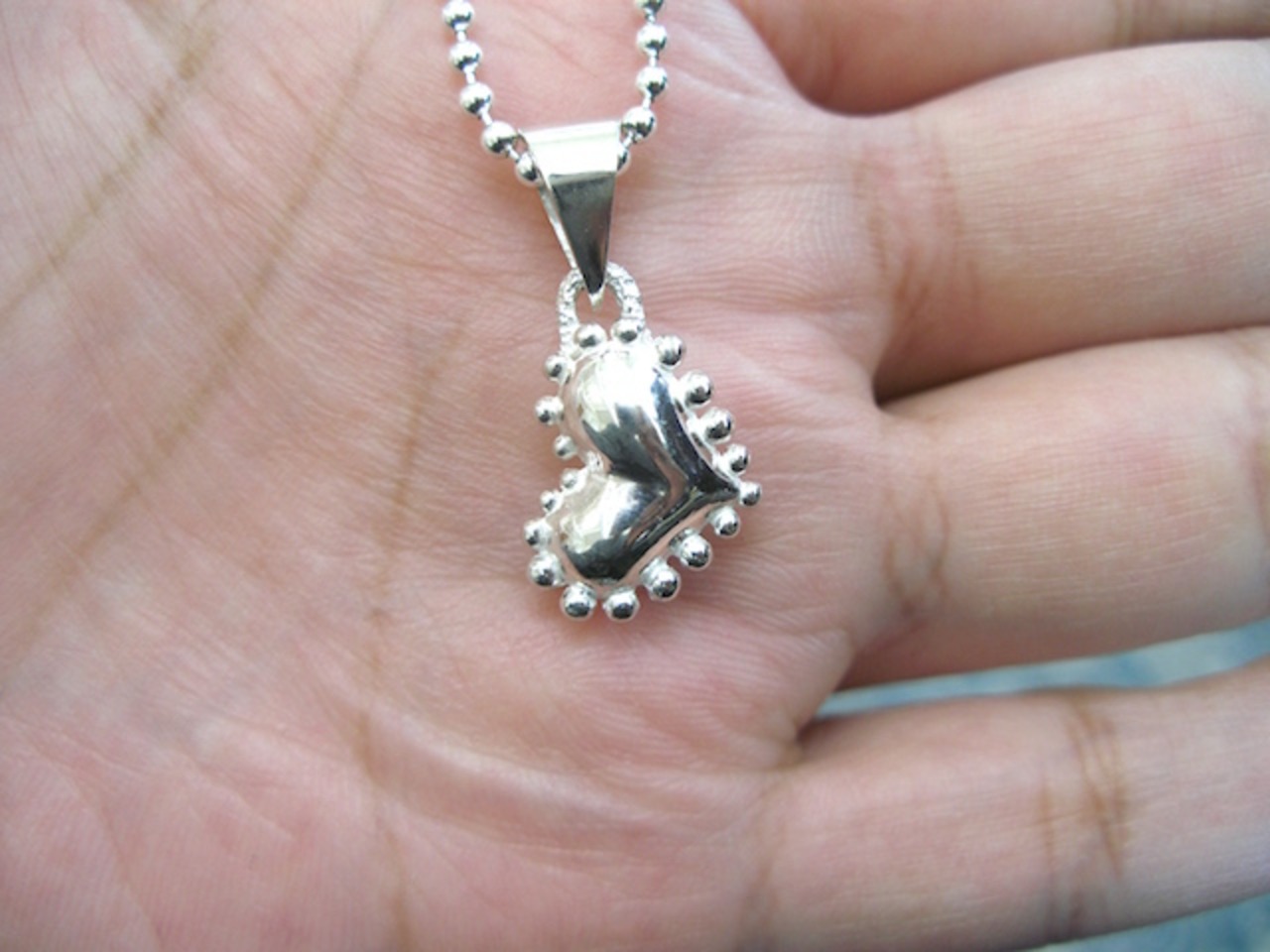 仁尾彫金『プラチナ釈迦玉ハートペンダント』ハンドメイド130