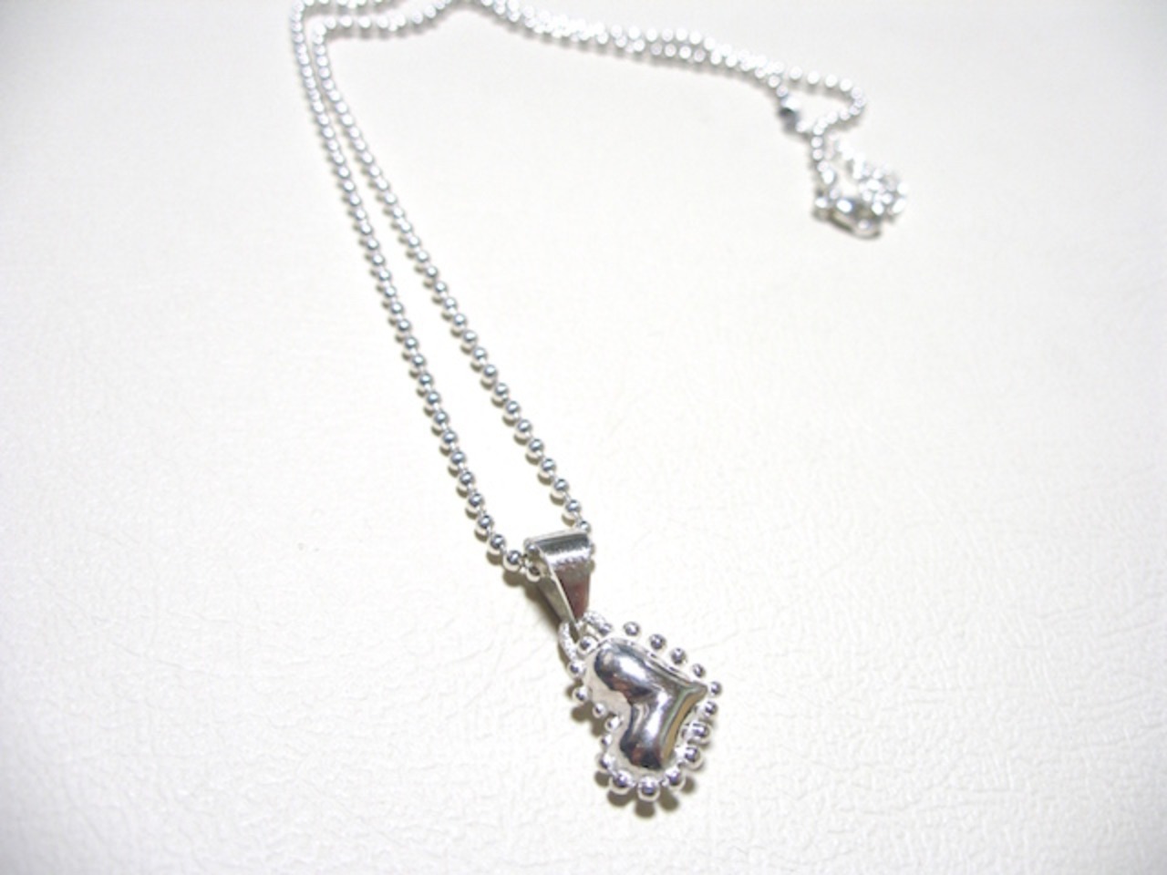 ごらん頂きありがとうございます。 オリジナルブランド 仁尾彫金『プラチナ釈迦玉ハートペンダント』を出品致します。オリジナルでアクセサリーを自ら制作しています。今回、 ハートをかわいく表現できる方法はないかと考え、縦1.6横1.2cmのぷっくりとしたハートの枠にグラデーション的に大きさを変えた釈迦玉を配置致しました。釈迦玉がハートの輪郭を際立たせるデザインでキュートさを追究して作りました。全てpt900の塊でプラチナを約9gと大胆に使用しています。全てプラチナの塊なので変色する事はありません。オリジナリティを追求しデザイン、制作を私自身で行っている為、今回、新品をご用意致します!! ネックレス45cm(シルバー925ボールチェーン(40から45cmサイズ調節可)も付属致します。
