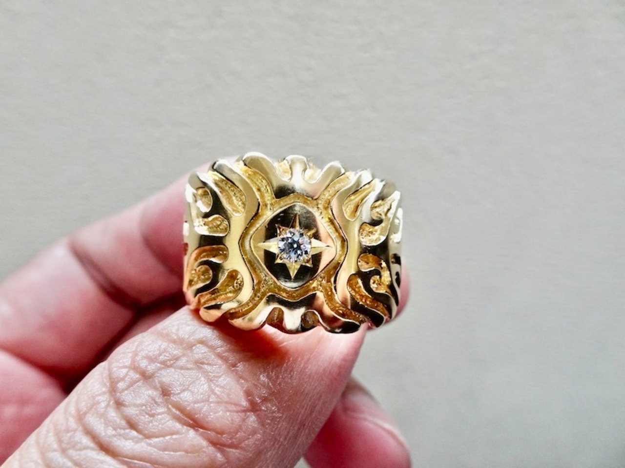 仁尾彫金『一つ星3mmダイヤ、ゴールドファイヤーパターン、リング』ハンドメイド243