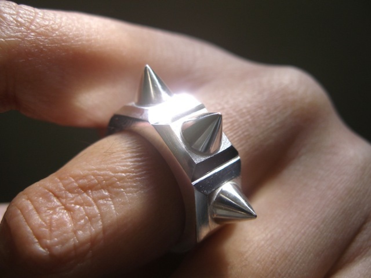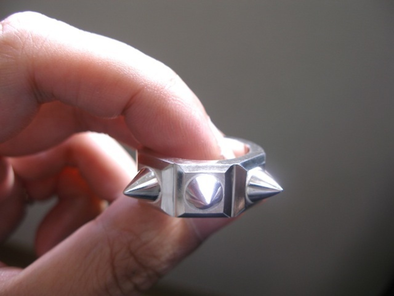 ごらん頂きありがとうございます。 オリジナルブランド 仁尾彫金『プラチナ3つのマッドスパイクリング』を出品致します。オリジナルのアクセサリーを自ら制作しています。今回、幅1cmの平たいリングに高さ4mmの四角い台座を3つ表現し、そこにスパイクモチーフを載せてみました。スパイクを合わせると厚みは約1cmあります。リングの腹の部分の厚みも2ミリ以上あり非常に肉厚で裏抜き無し全てプラチナの塊でプラチナを約46gとプラチナを大胆に使用し、しっかりとした作りになっています。全てプラチナの塊なので変色する事はありません。デザイン制作を私自身で行っている為、今回、新品をご用意致します!!!