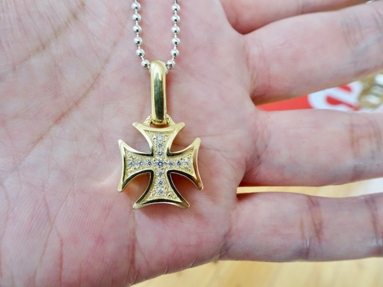仁尾彫金『ギャラクシーゴールドアイアンクロス、ダイヤヘッド』ハンドメイド439