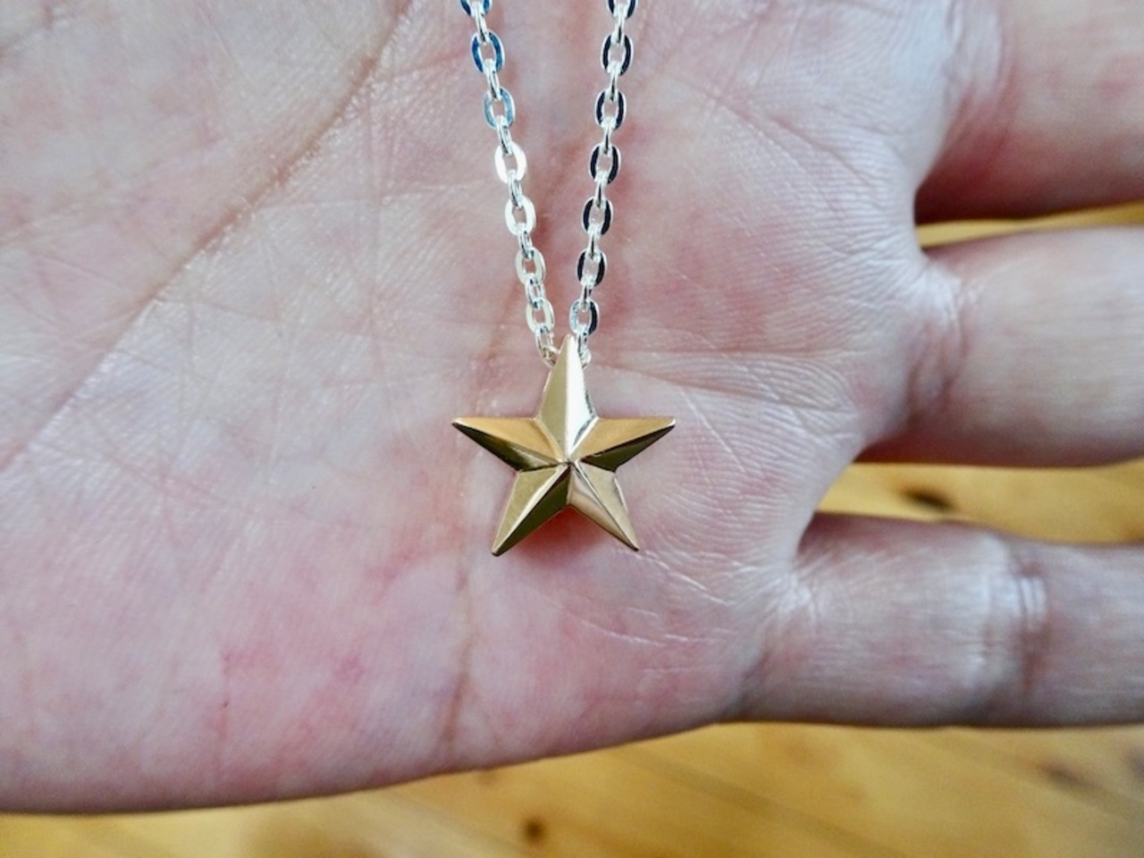 ごらん頂きありがとうございます。 オリジナルブランド 仁尾彫金『ピンクゴールド立体スターペンダントバチカンなし』を出品致します。 宇宙をテーマにしたアクセサリーをオリジナルで自ら制作しています。今回、大きさ1.2cmのシンプルで立体的な星のペンダントを制作致しました。厚みは最大5ミリと肉厚です。意外にシンプルな星だけのペンダントは無いと思い作ってみました。全てK18の塊で重量はK18を約3g強と大胆に使用しています。全て金の塊なので永久にピンクゴールドに輝き続けます!!デザイン、制作を私自身で行っている為、今回、新品をご用意致します!! シルバー925小豆チェーン45cm(40から45cmサイズ調節可)も付属致します。