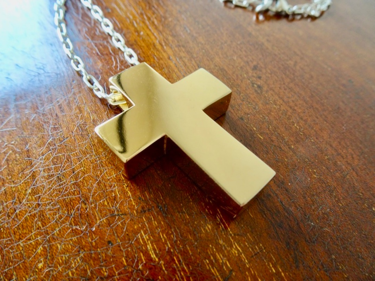 仁尾彫金『ビッグ、ゴールドブロッククロス』ハンドメイド250
