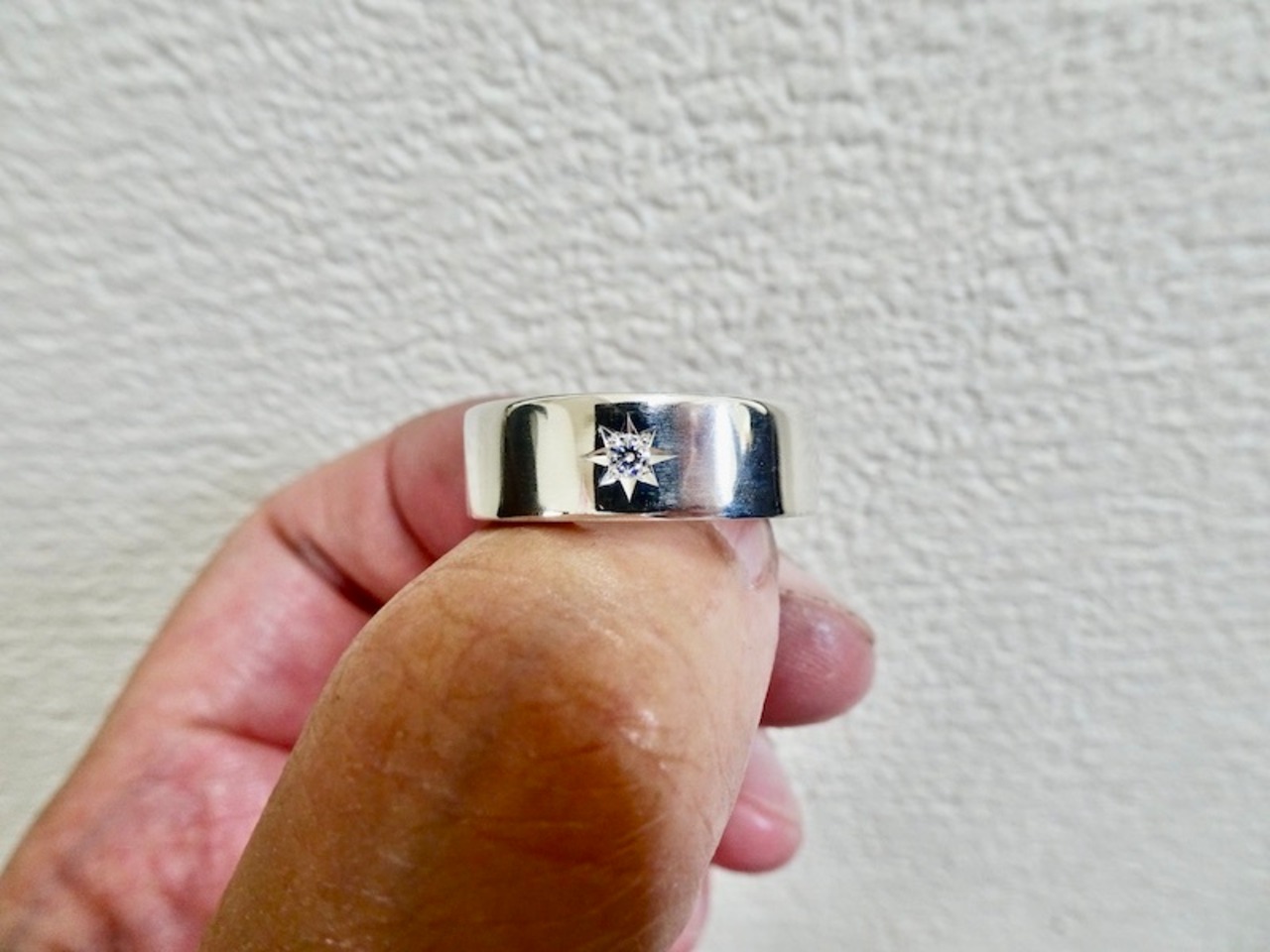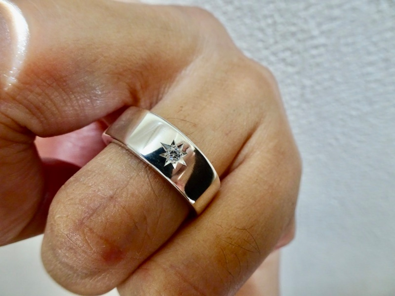 仁尾彫金『一つ星2.3mmダイヤ、幅7mm、プラチナ平打リング』ハンドメイド261