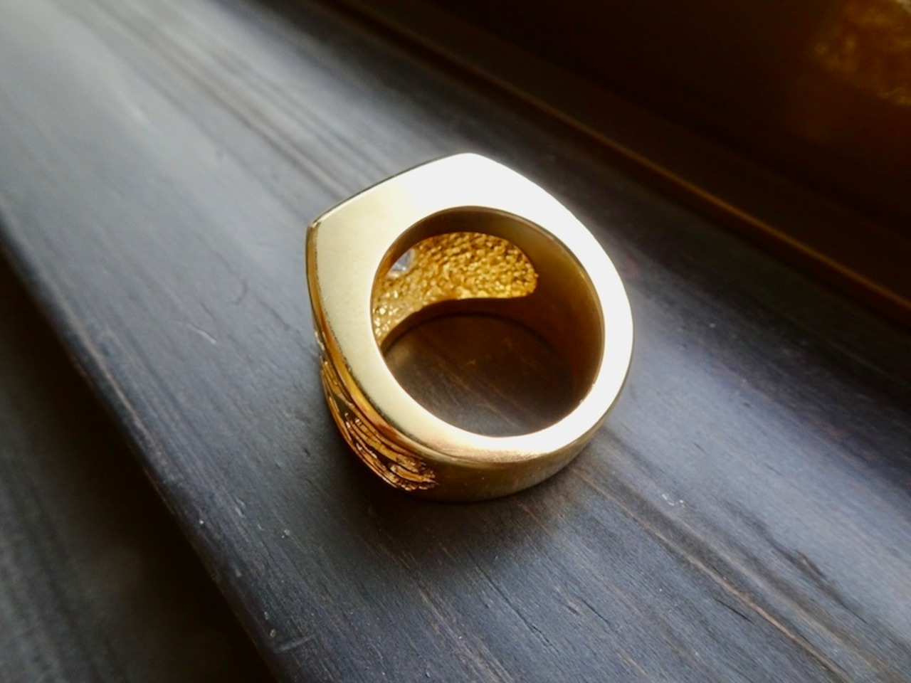 仁尾彫金『一つ星ジルコニア、ファイヤーパターン、ゴールド印台リング』ハンドメイド266