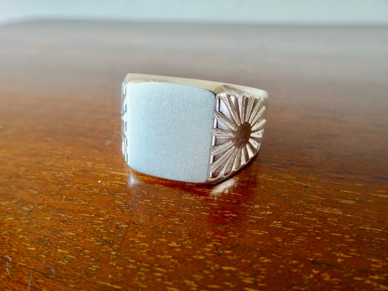 仁尾彫金『プラチナ太陽の印台リング』ハンドメイド193