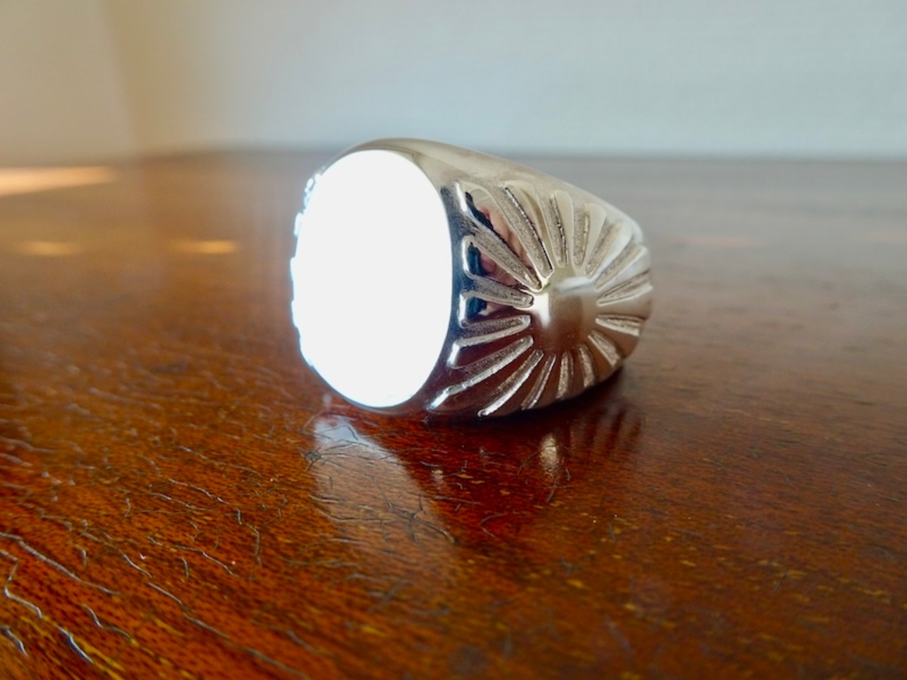 仁尾彫金『プラチナ太陽の楕円印台リング』ハンドメイド173
