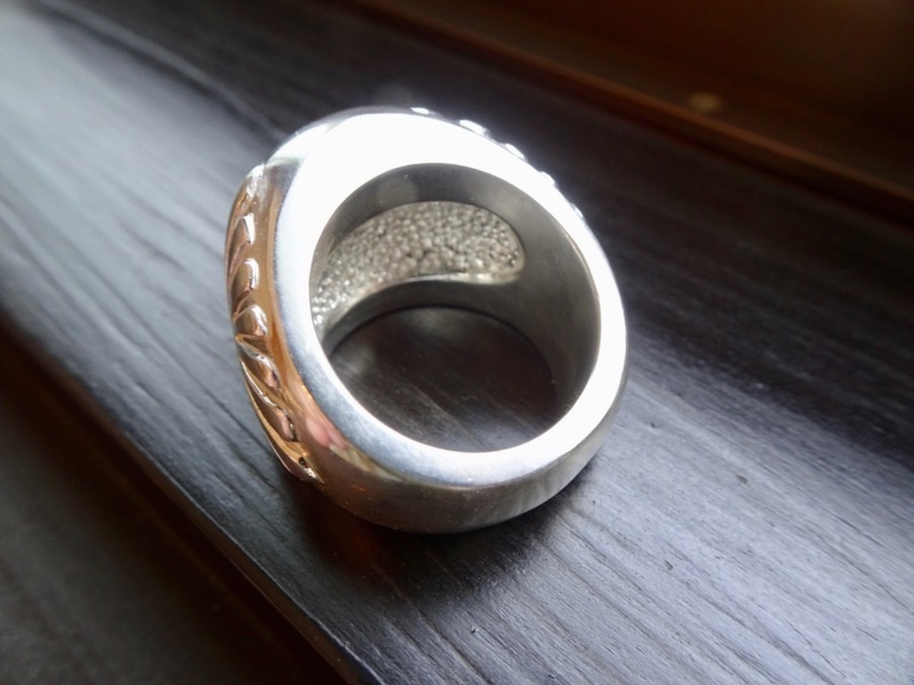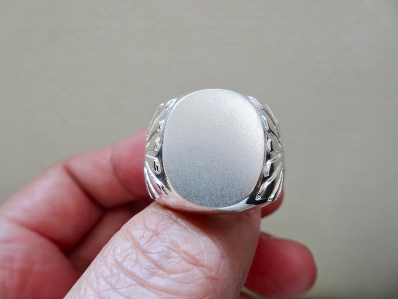 ごらん頂きありがとうございます。 オリジナルブランド 仁尾彫金『プラチナ太陽の楕円印台リング』を出品致します。オリジナルのアクセサリーを自ら制作しています。今回、幅2cm強、厚み7mmのシンプルな楕円の印台リングを制作致しました。そこに今回、両サイドに太陽をイメージした造形を表現致しました。印台面は艶消ししています。全てプラチナの塊でプラチナ900を約90gとズッシリと大胆に使用し、しっかりとした作りになっています。全てプラチナの塊なので変色する事はありません。オリジナリティを追求しデザイン、制作を私自身で行っている為、今回、新品をご用意致します!!