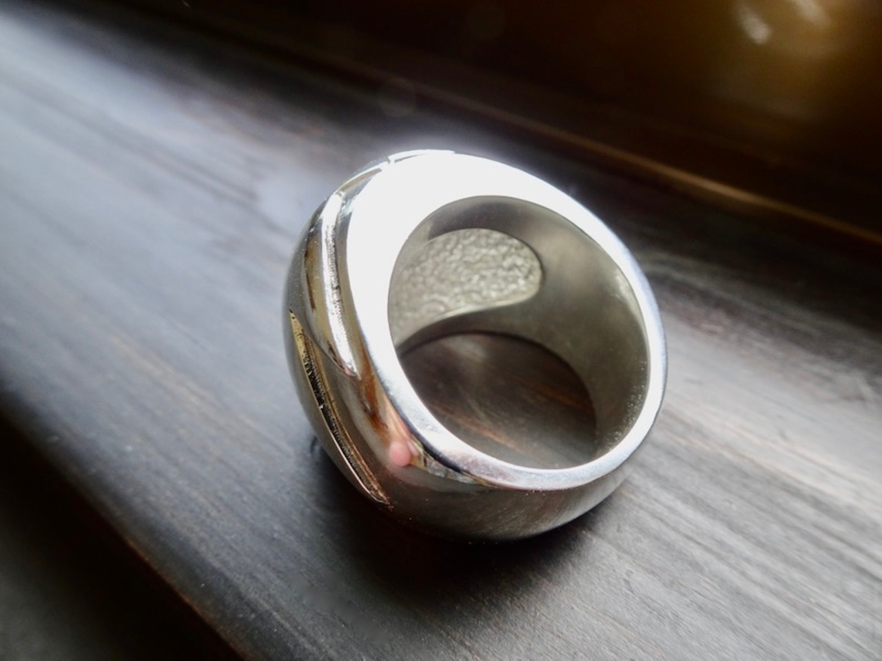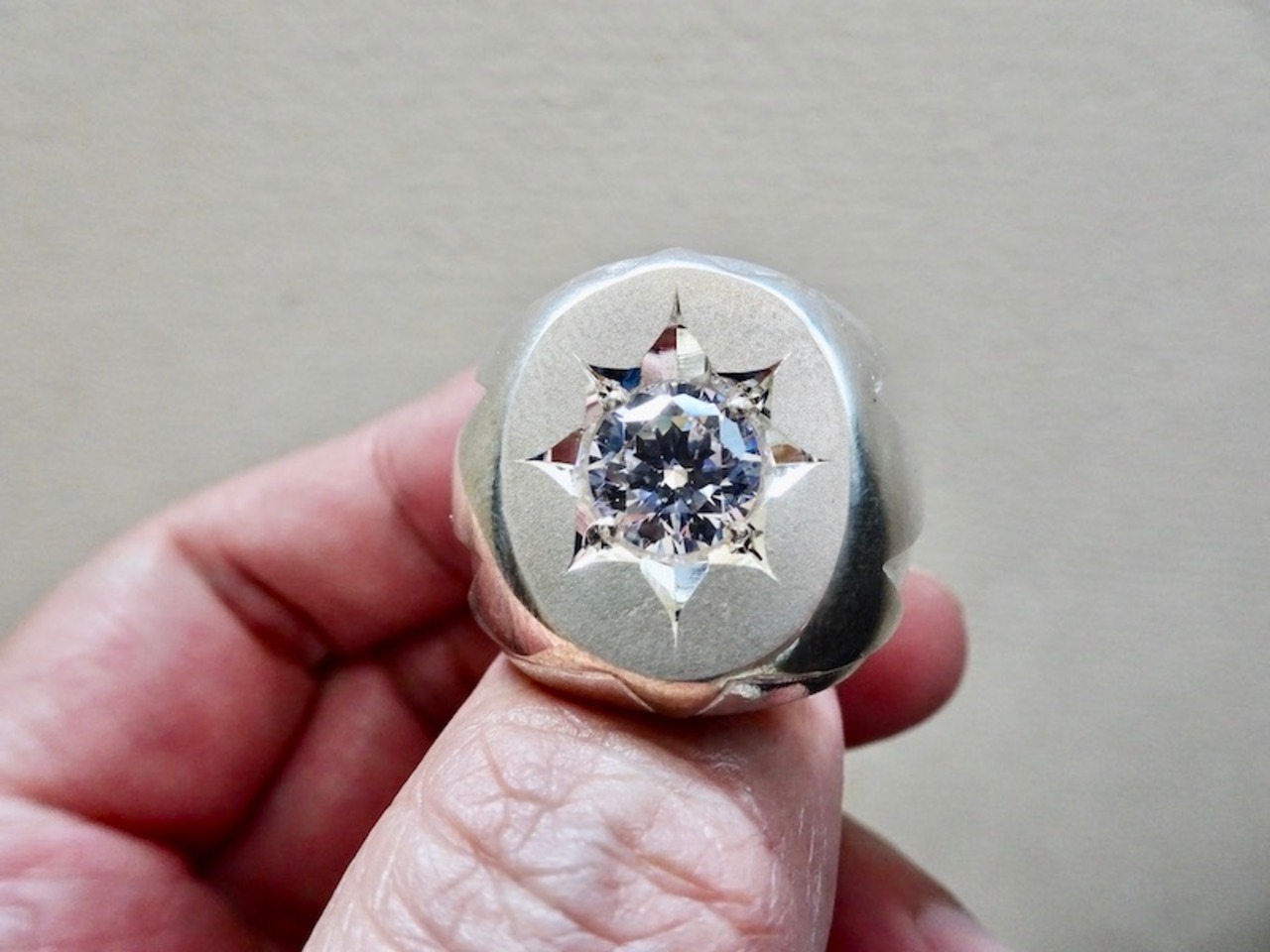 仁尾彫金『一つ星ジルコニア、プラチナ、コピアポア楕円の印台リング』ハンドメイド184