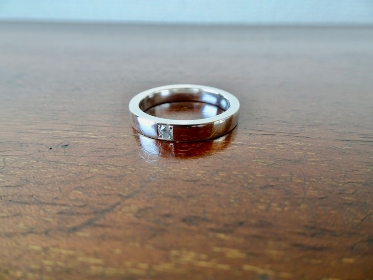 仁尾彫金『2.6mmダイヤ、幅3.5mm、プラチナ平打リング』ハンドメイド287