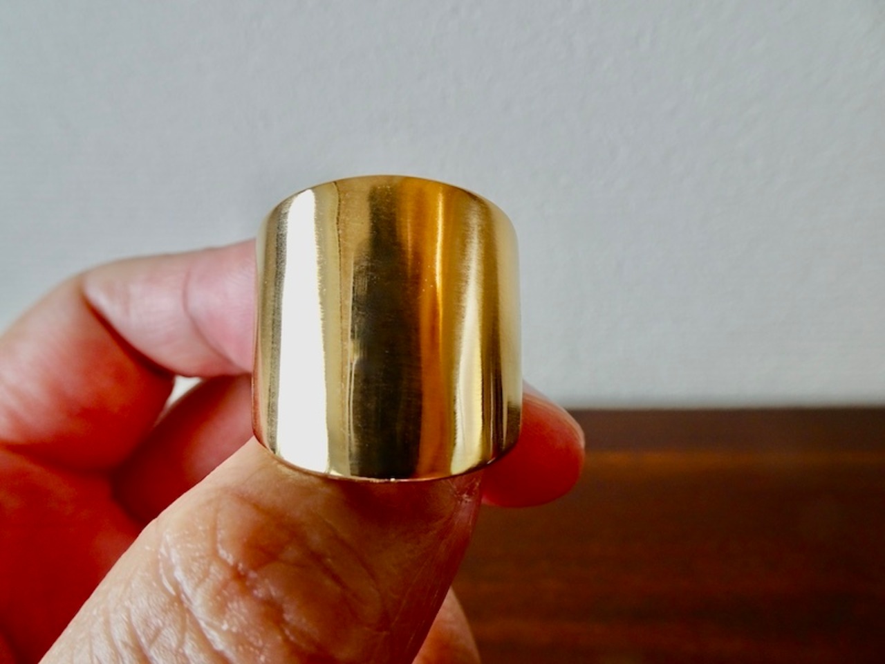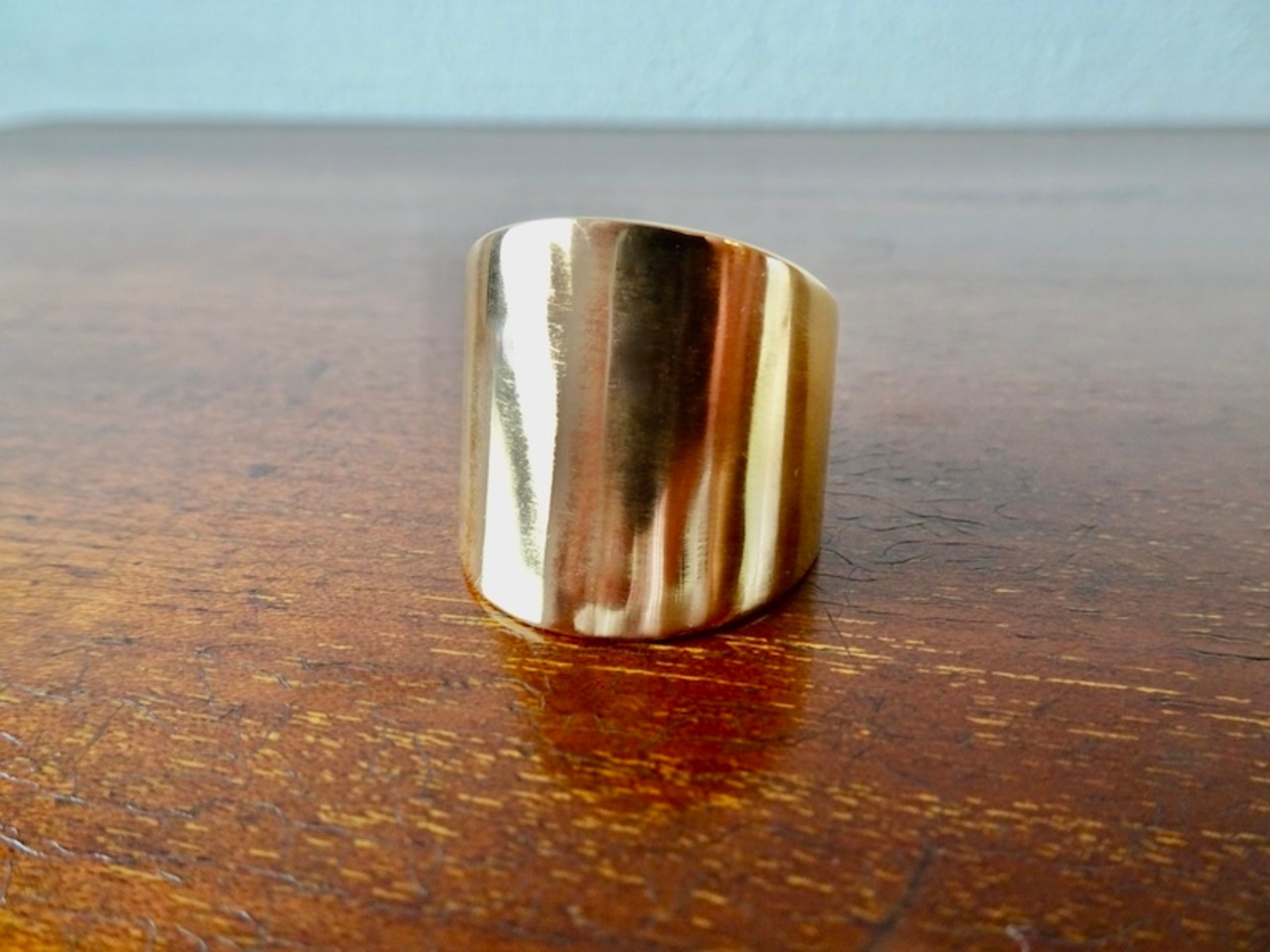 仁尾彫金『最大幅2.3cm最小幅8mm、ゴールド平打ちリング』ハンドメイド285