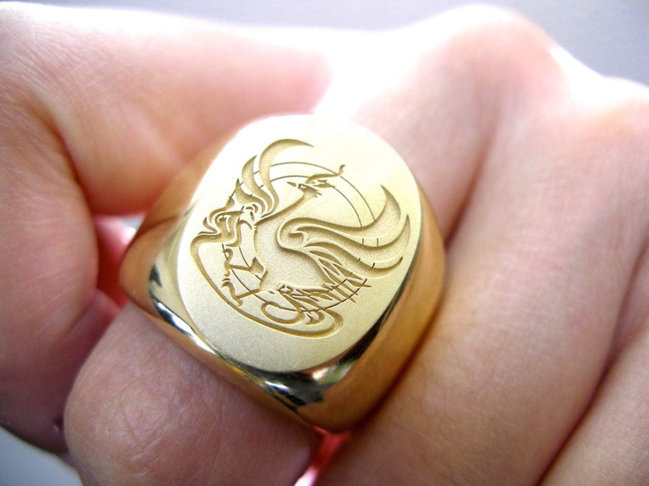 仁尾彫金『鳳凰のゴールド印台リング』ハンドメイド162