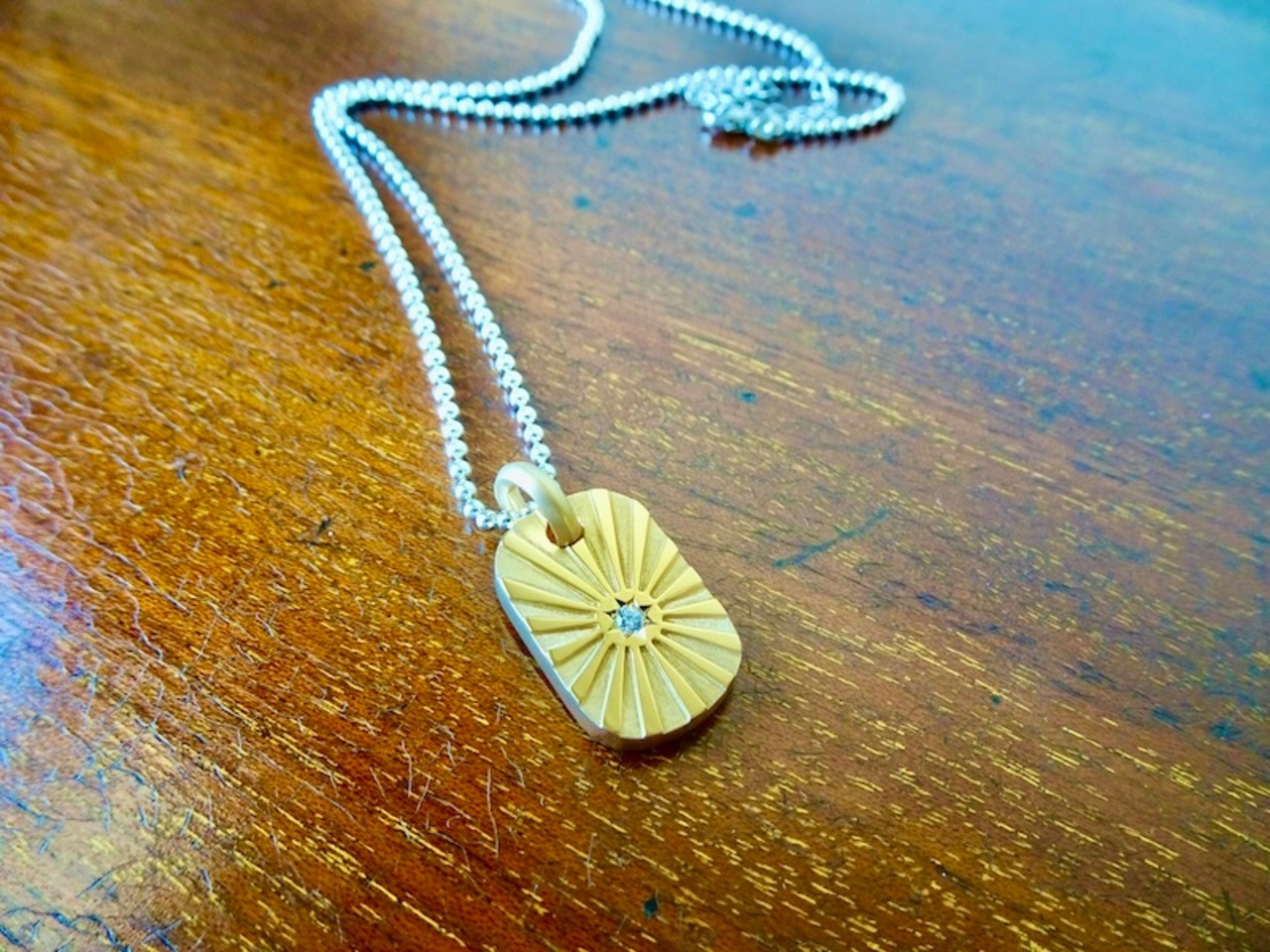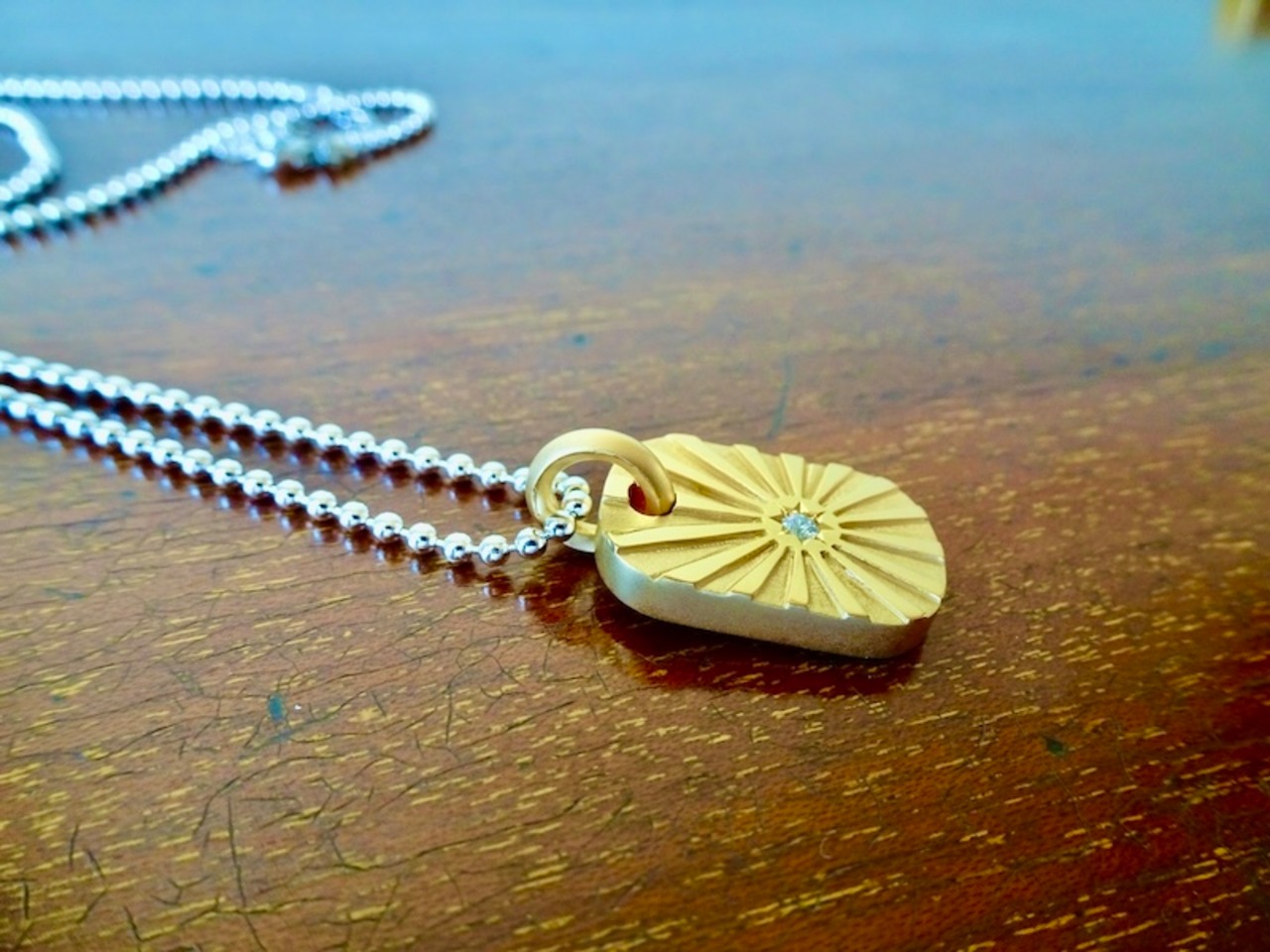 仁尾彫金『一つ星ダイヤ、k18太陽のプレート2、光磨き』ハンドメイド324