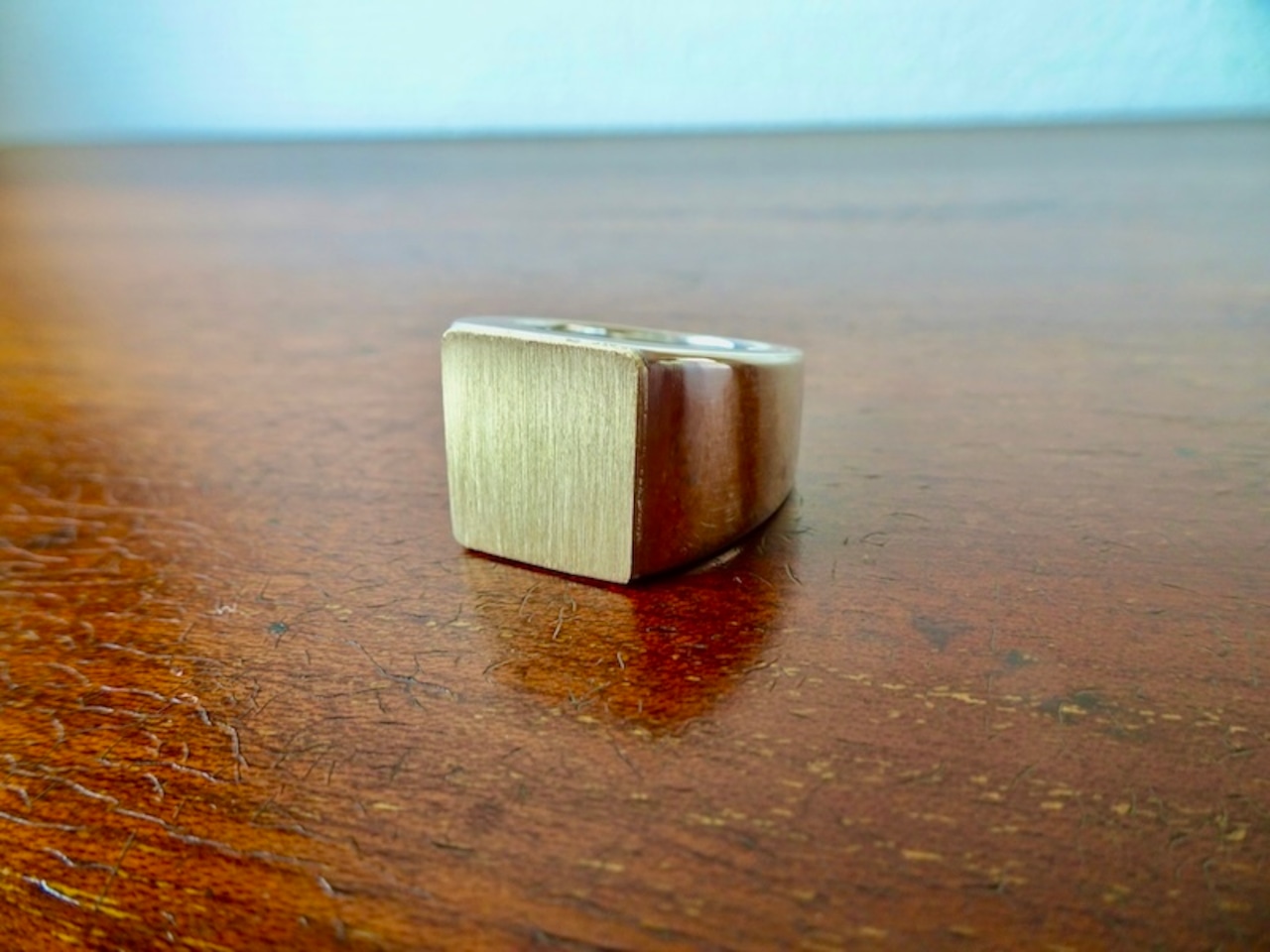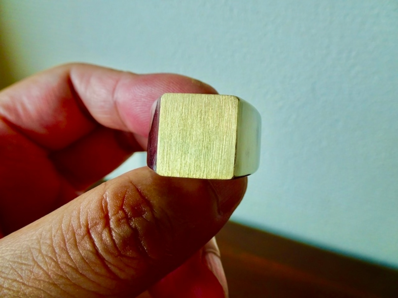 仁尾彫金『ゴールドプレート印台リング、ヘアライン』ハンドメイド329