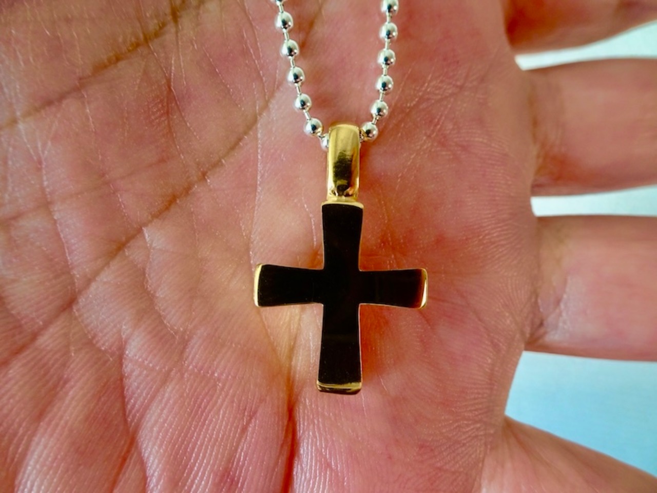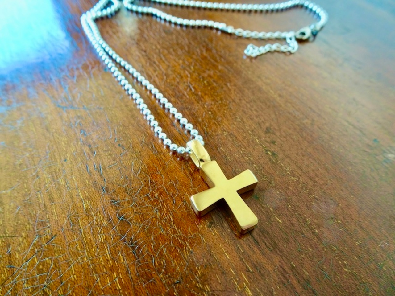 ごらん頂きありがとうございます。 オリジナルブランド 仁尾彫金『k18十字クロス』を出品致します。 オリジナルのアクセサリーを自ら制作しています。今回、バチカンを含めまして縦2.5cm横1.6cmのシンプルなクロスを制作致しました。十字タイプのクロスはあまりないと思い作りました。厚みも3ミリ強と肉厚です。全て金の塊でk18を約6gと金を大胆に使用しています。全て金の塊なので永久にゴールドに輝き続けます!!デザイン、制作を私自身で行っている為、今回、新品をご用意致します!! シルバー925ボールチェーンネックレス45cm(40から45cmサイズ調節可)も付属致します。