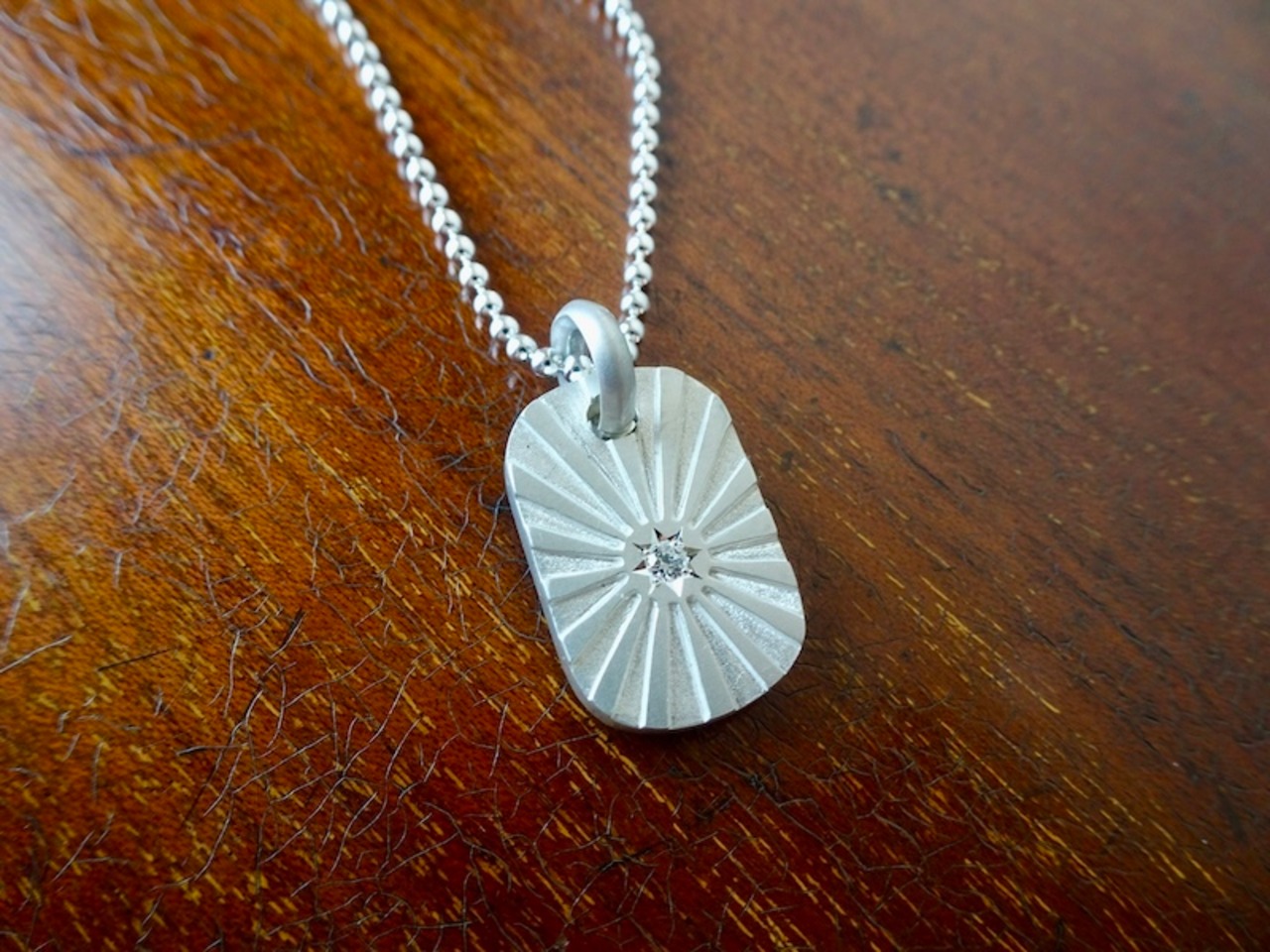 仁尾彫金『一つ星ダイヤ、プラチナ、太陽のプレート2』ハンドメイド323