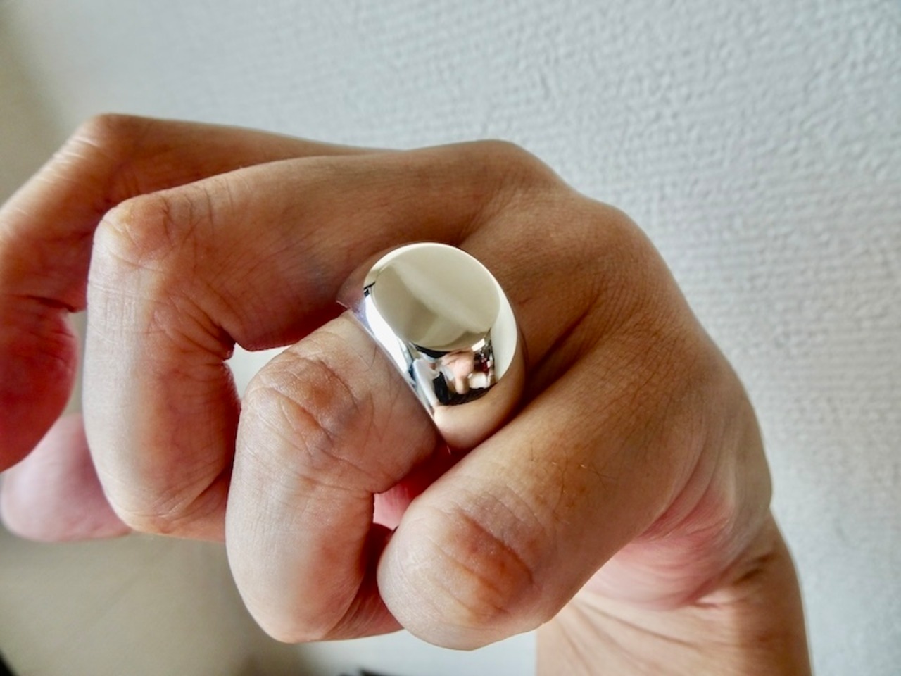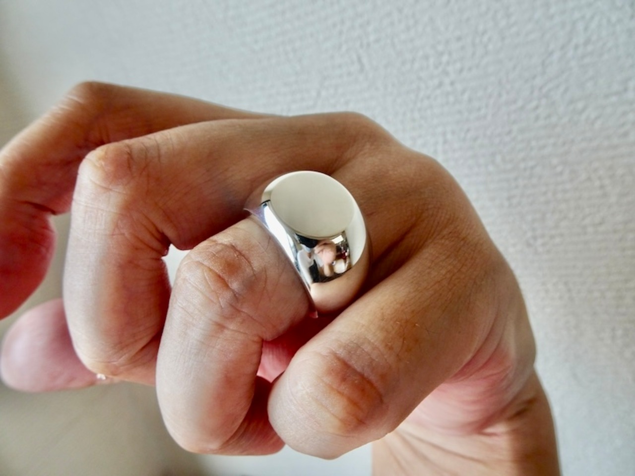 仁尾彫金『プラチナ、丸の印台リング、磨き』ハンドメイド330