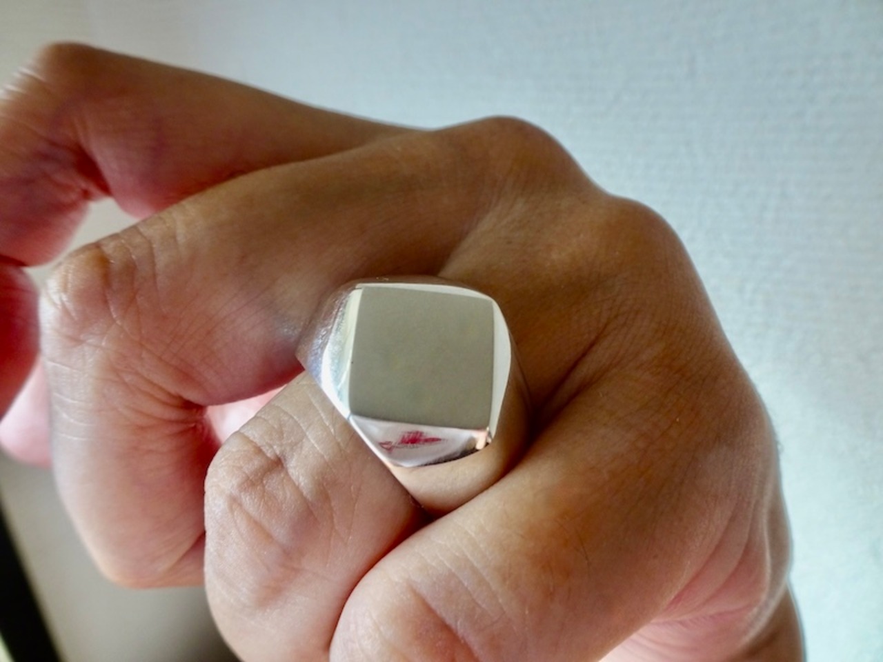 仁尾彫金『プラチナ、菱形印台リング』ハンドメイド342