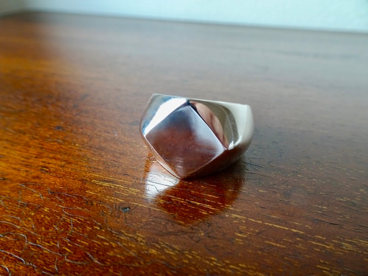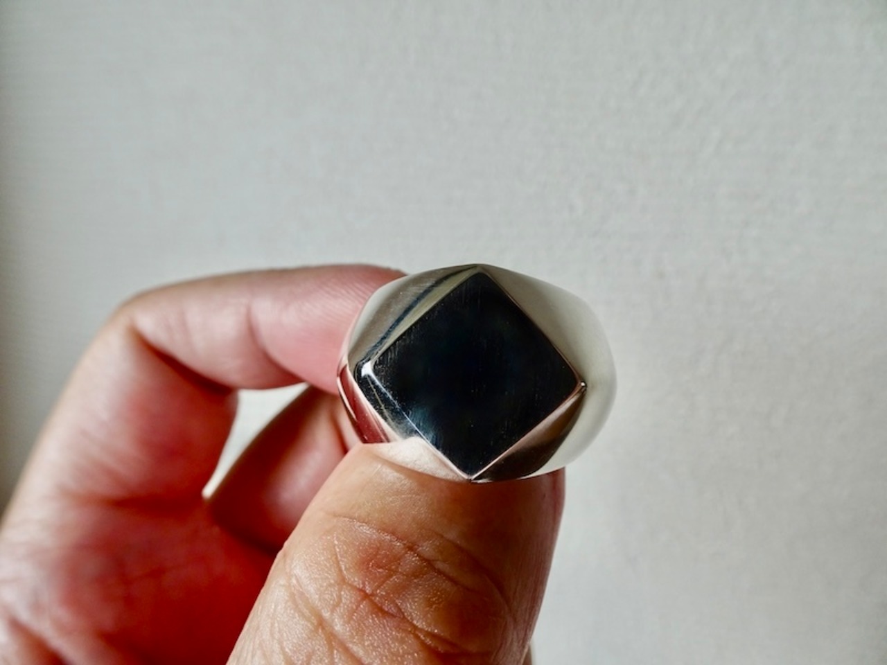仁尾彫金『プラチナ、菱形印台リング、磨き』ハンドメイド341