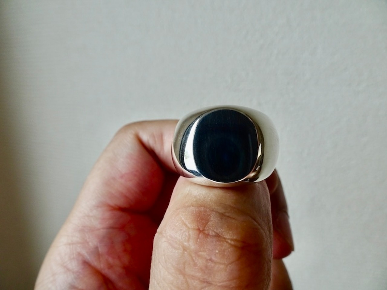 仁尾彫金『プラチナ、楕円の印台リング2、磨き』ハンドメイド334